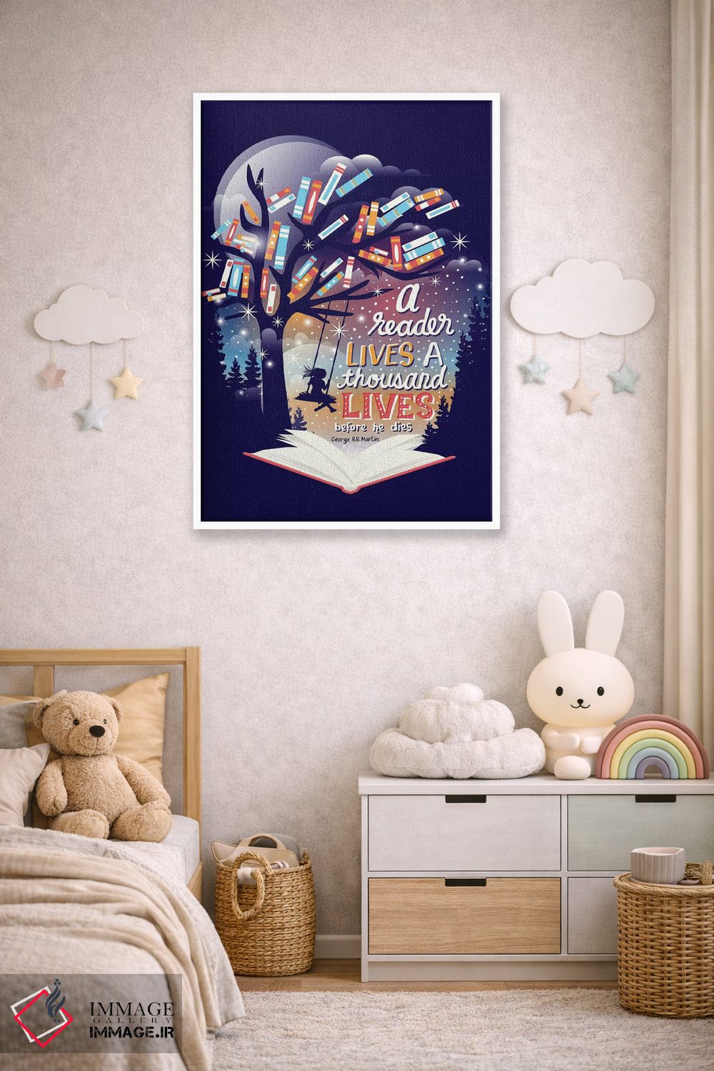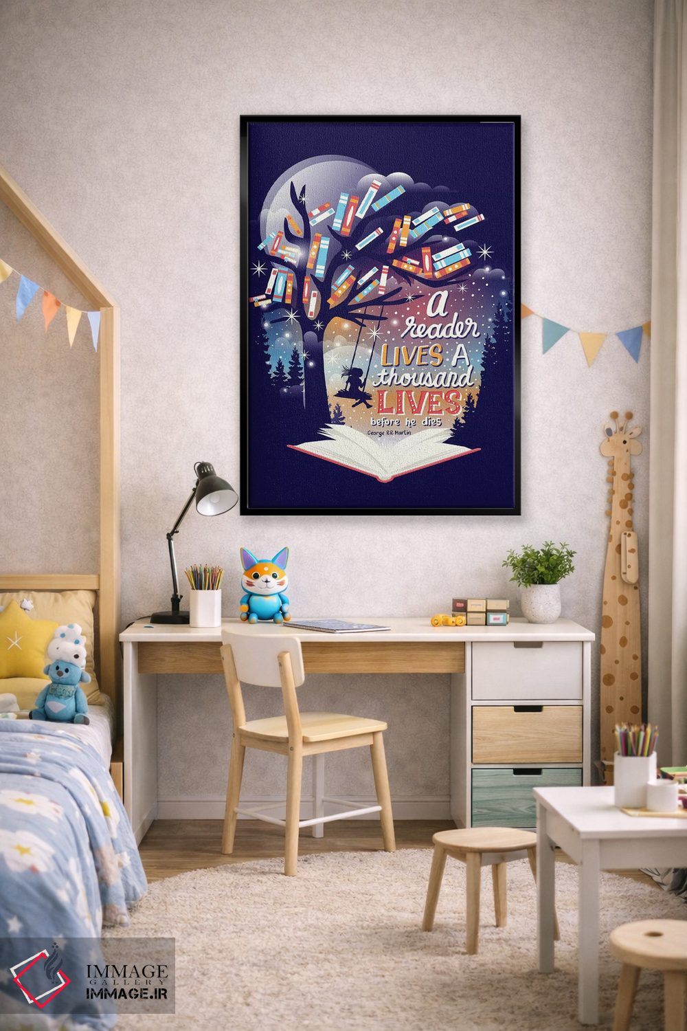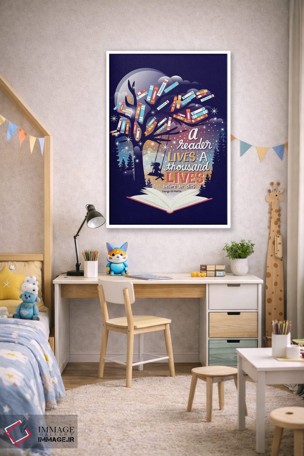 در «هزار زندگی» اثرِ «ریزا رودیل»، کلمات نقش تصویر را بازی میکنند؛ انتخابی خوب برای اتاق کار، استودیو یا کافهاستایل.