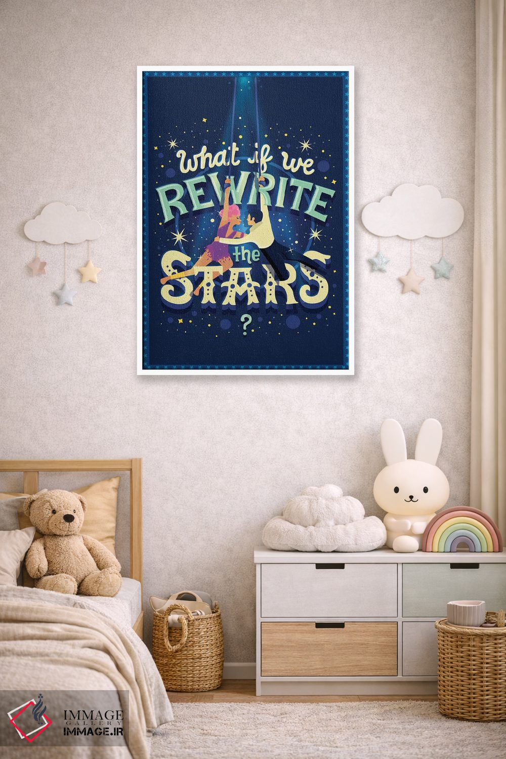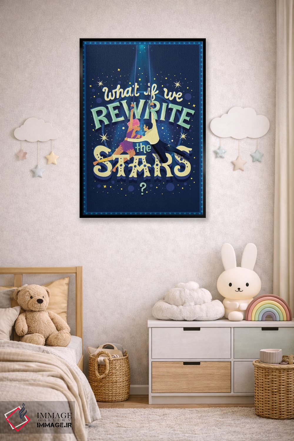 براساس پالت ترکیبی اثر، قاب بلوط روشن (چوبی) پیشنهاد اول است و استخوانی ملایم مکمل. برای سفارشهای پروژهای با ابعاد و قابهای اختصاصی با ایماژ در تماس باشید.