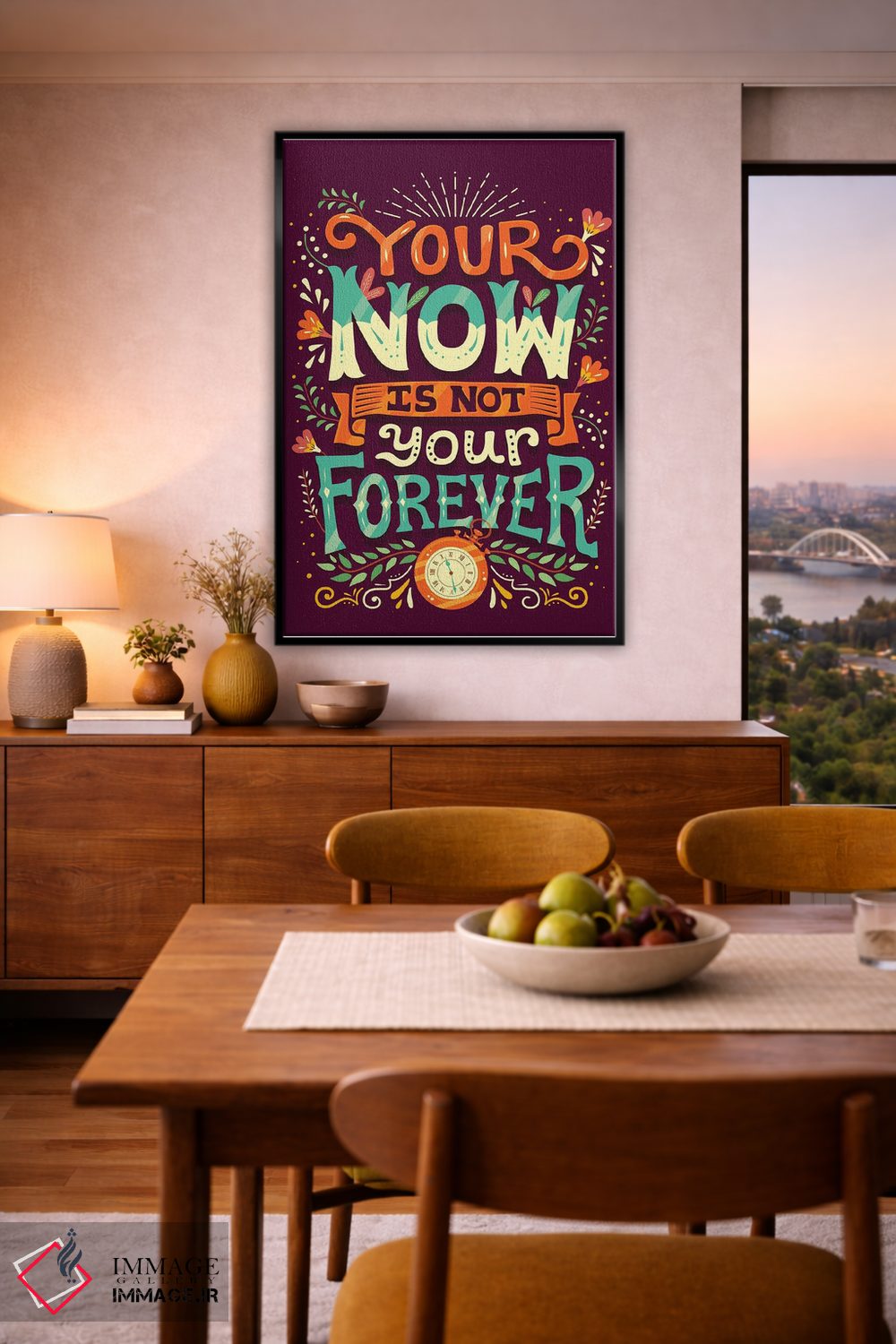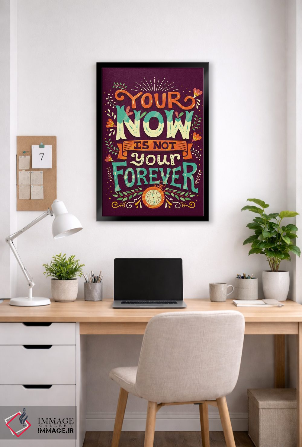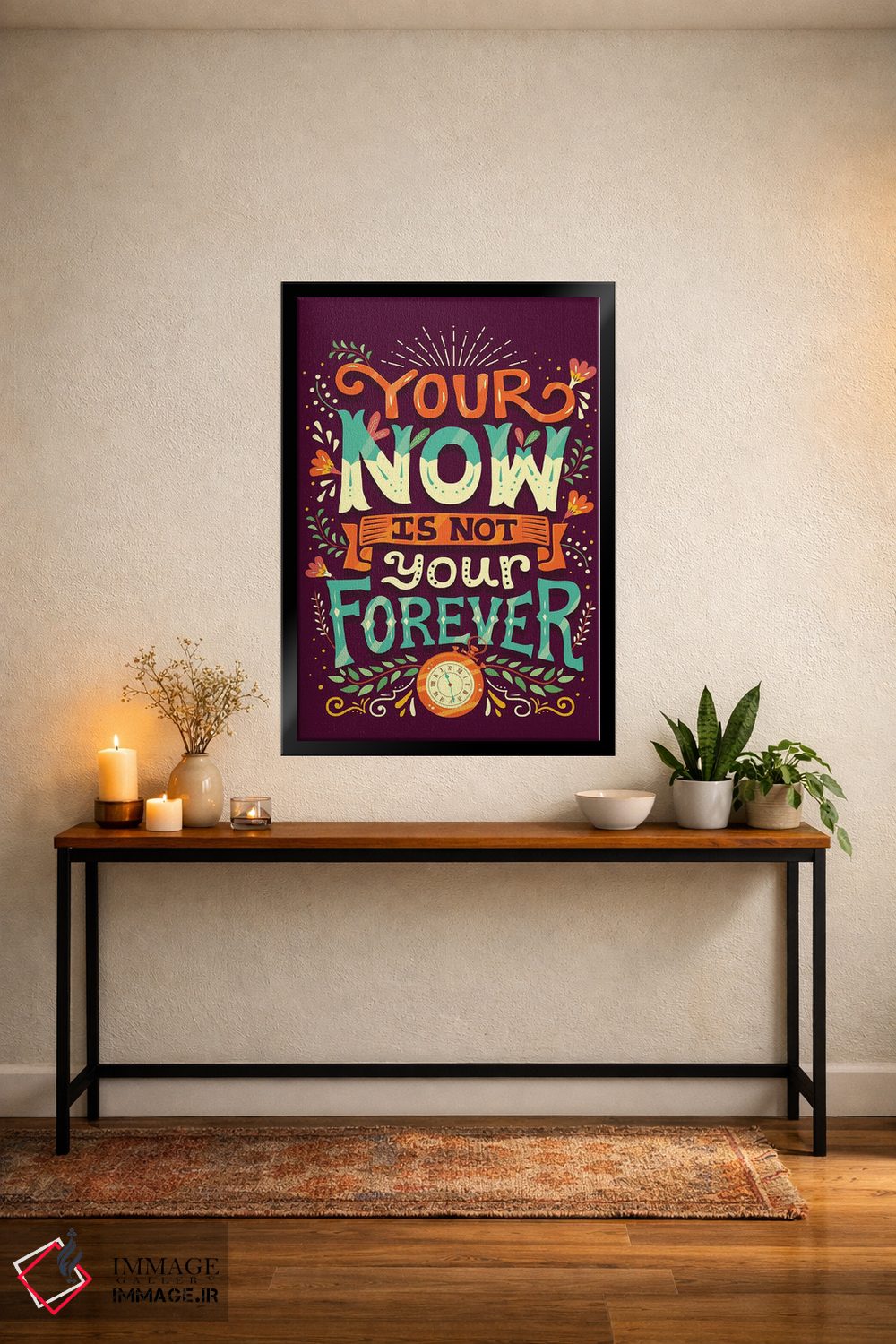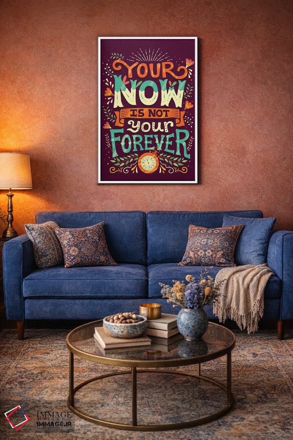 «اکنون تو همیشه اینگونه نخواهد بود» اثرِ «ریزا رودیل» بهخاطر ساختار گرافیکیاش، کنار رنگهای خنثی و دکور صنعتی هم خوب جلوه میکند.