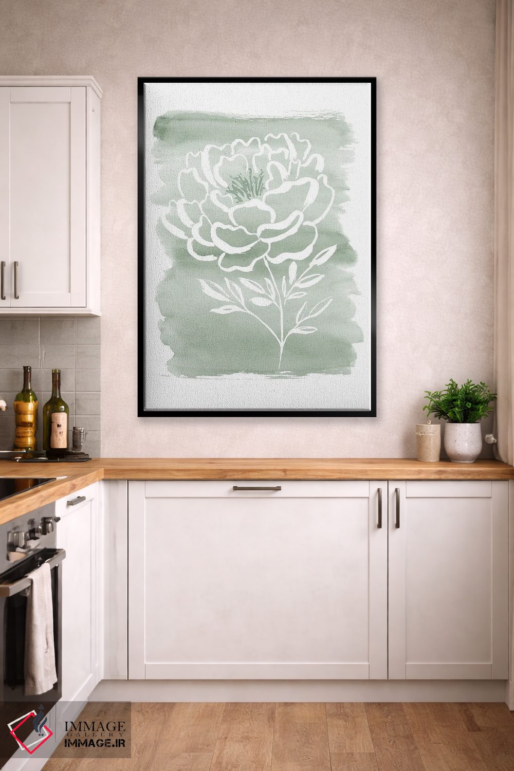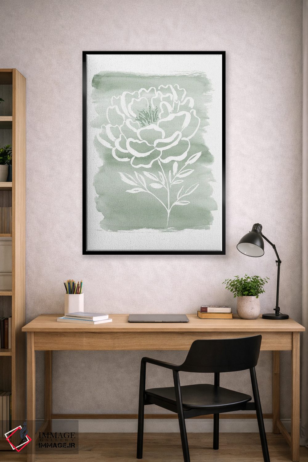 تابلو مینیمال گل صدتومانی و سبز مریم اثر سارا برنسون