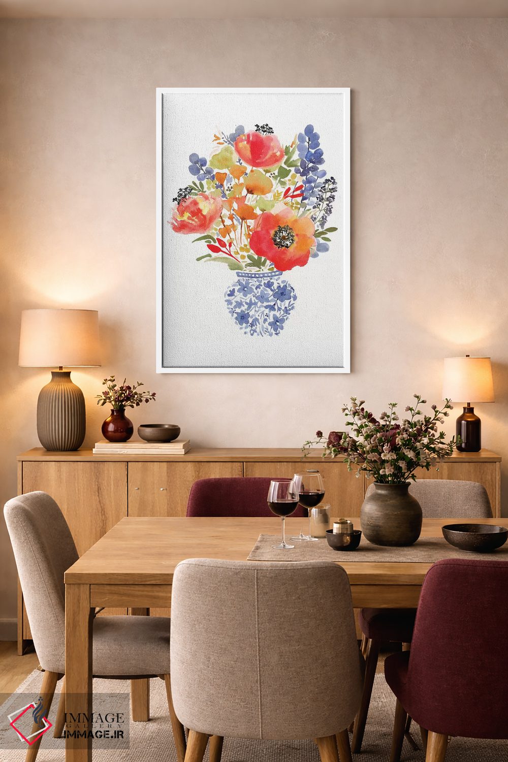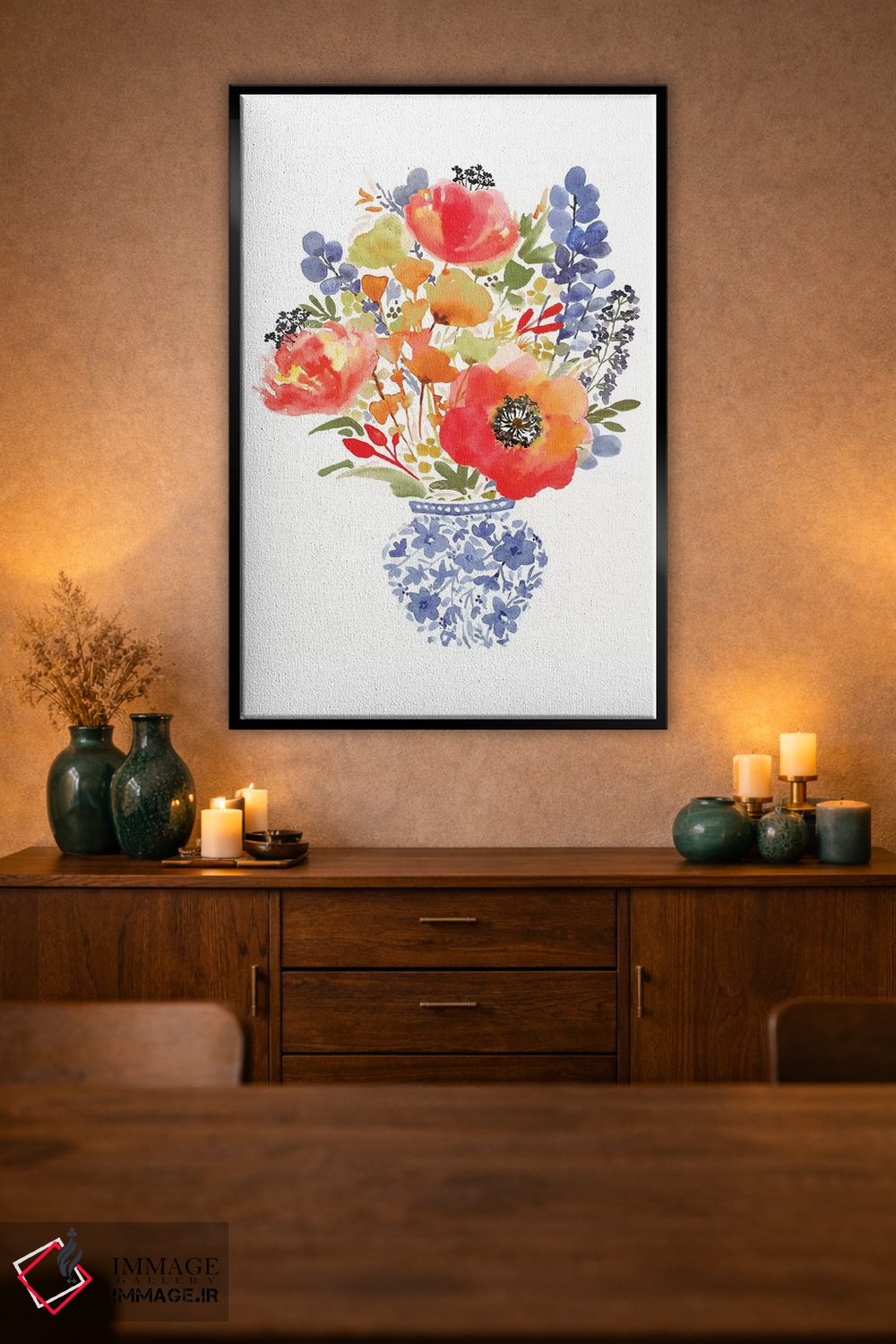 برای گالریوال و چیدمان چندقابی، با ایماژ از طریق تماس—با—ما/">تماس با ما در ارتباط باشید. اگر دنبال این هستید که اثر در محیط «پر انرژی و رنگی» دیده شود، نور موضعی ملایم نتیجه را بهتر نشان میدهد و تصمیم را سادهتر میکند.