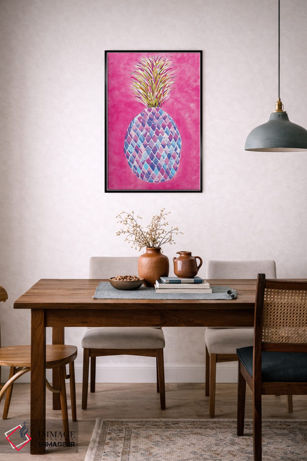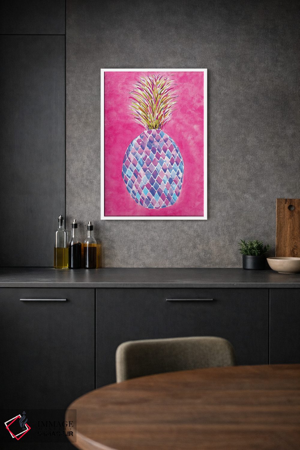 تابلو دکوراتیو آناناس صورتی اثر سارا برنسون - نمای روبه‌رو روی دیوار
