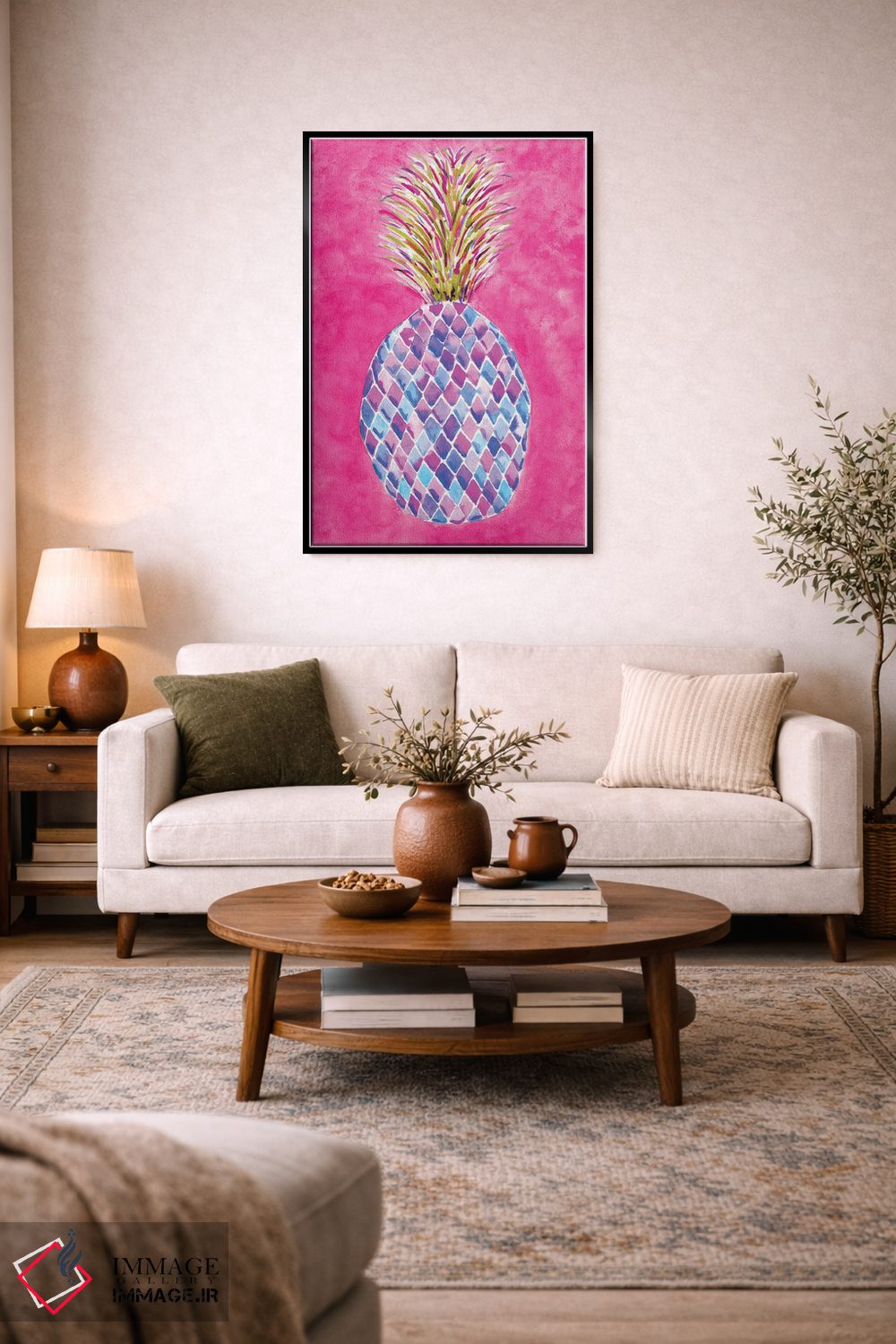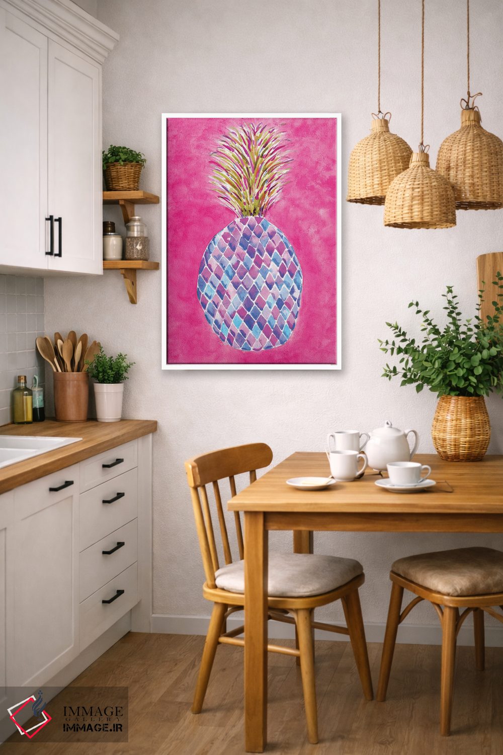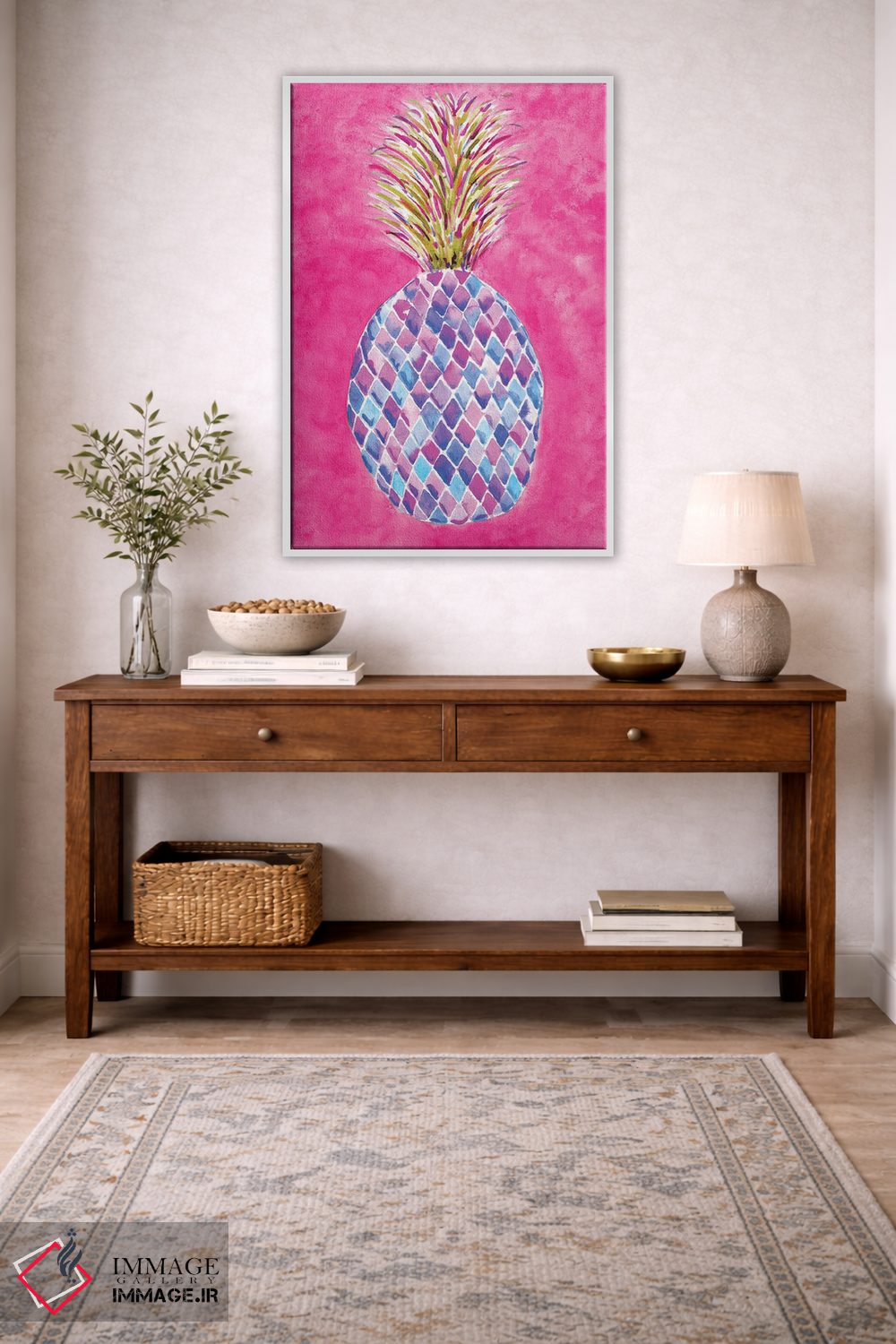 تابلو دکوراتیو آناناس صورتی اثر سارا برنسون - نمای پرسپکتیو محصول