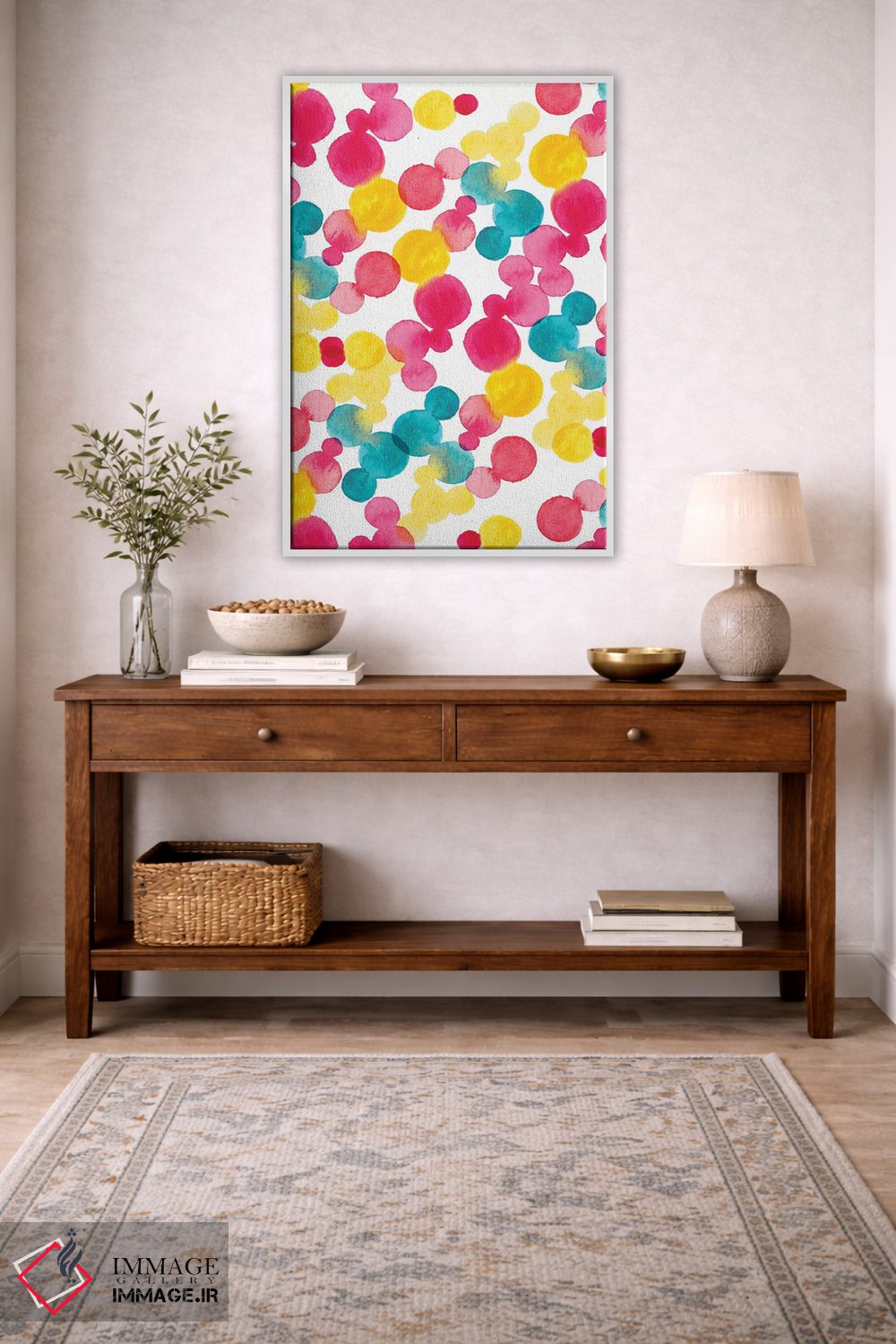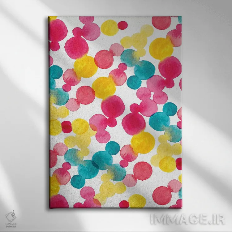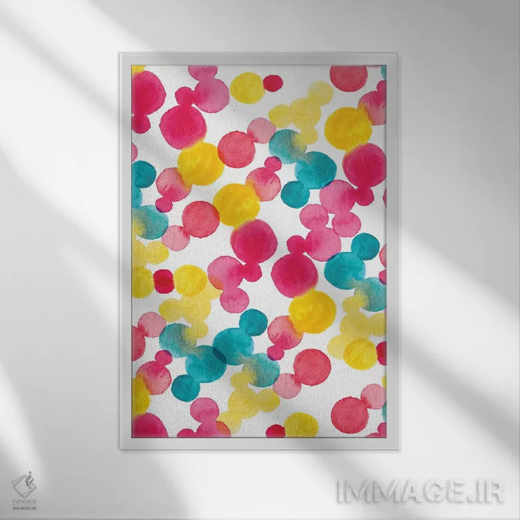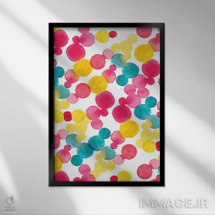 «نقاط آبرنگی» اثرِ «سارا برنسون» در فضای هنری، بیشتر روی ریتمِ رنگ و فرم تکیه دارد و برای دکورهای مدرن عالی مینشیند.
