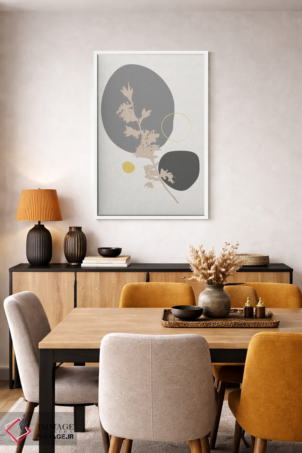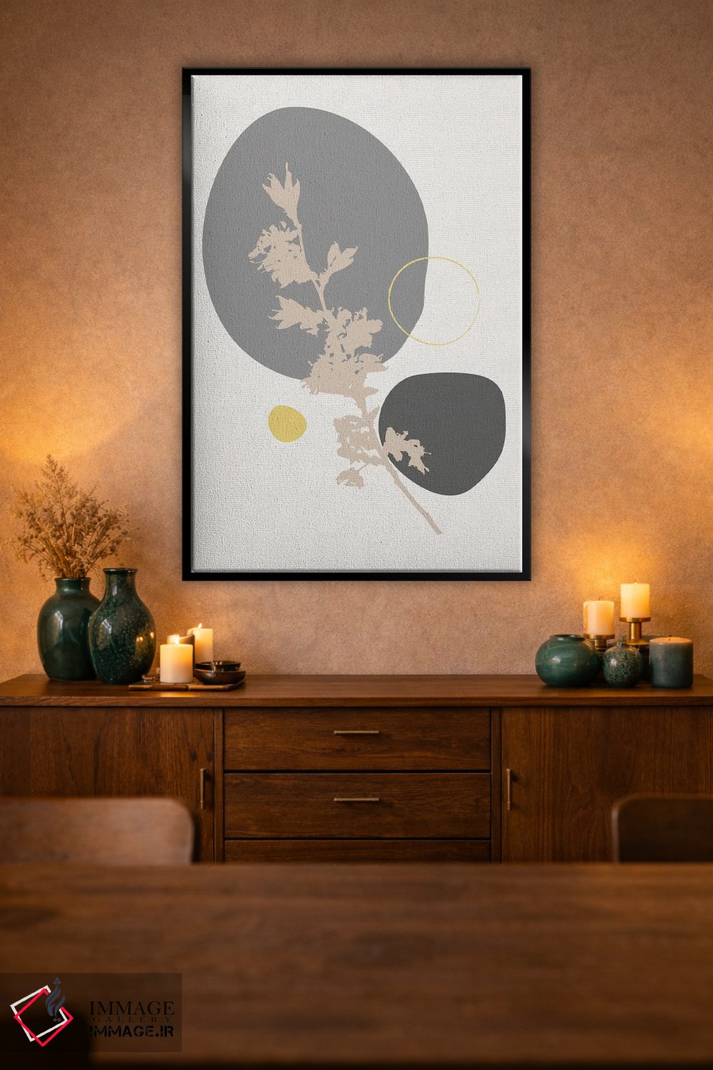 براساس پالت گرم اثر، قاب تیک گرم (چوبی) پیشنهاد اول است و مشکی مات (فریم متوسط) مکمل. برای سفارشهای پروژهای با ابعاد و قابهای اختصاصی با ایماژ در تماس باشید.