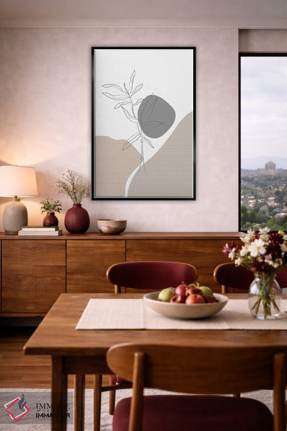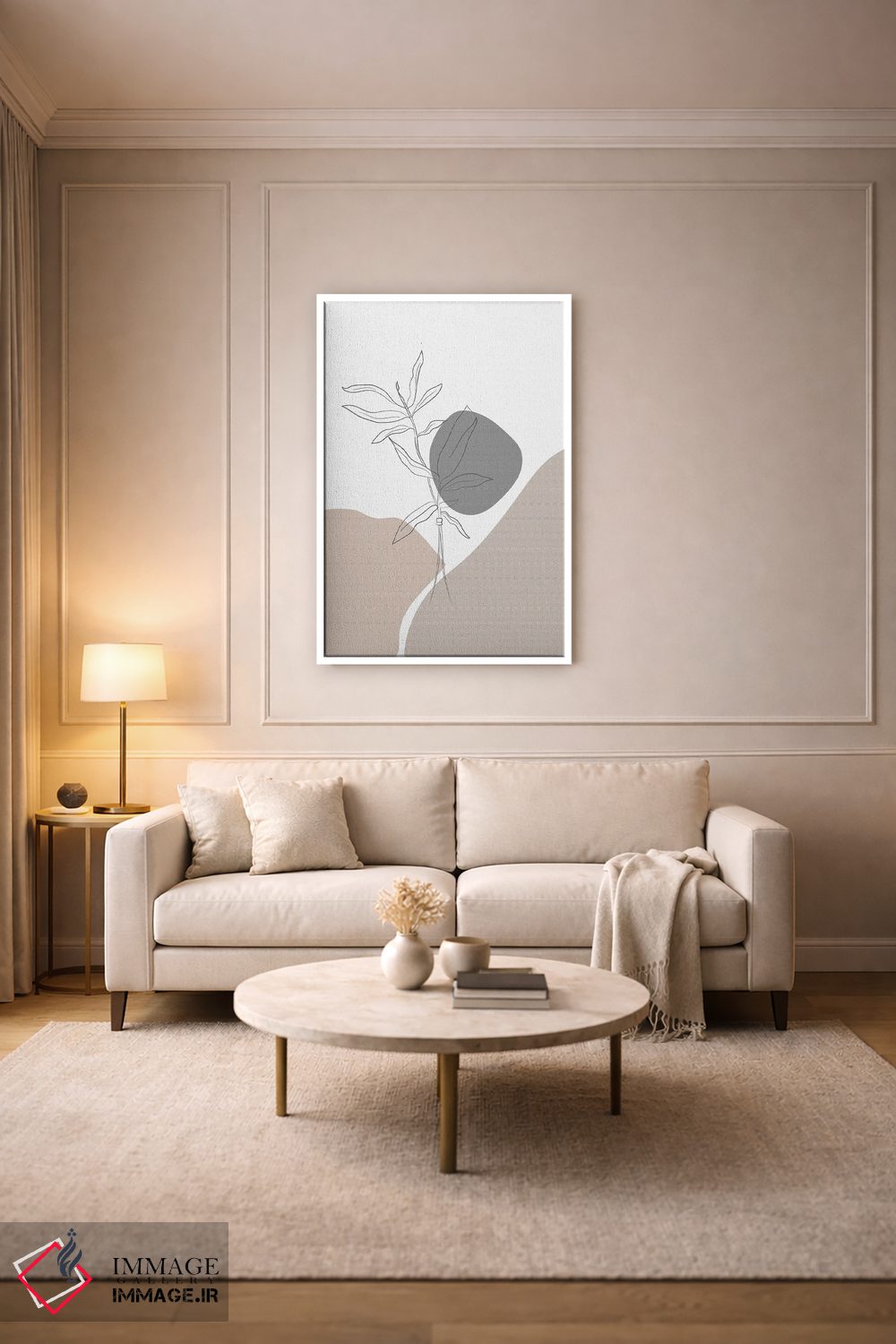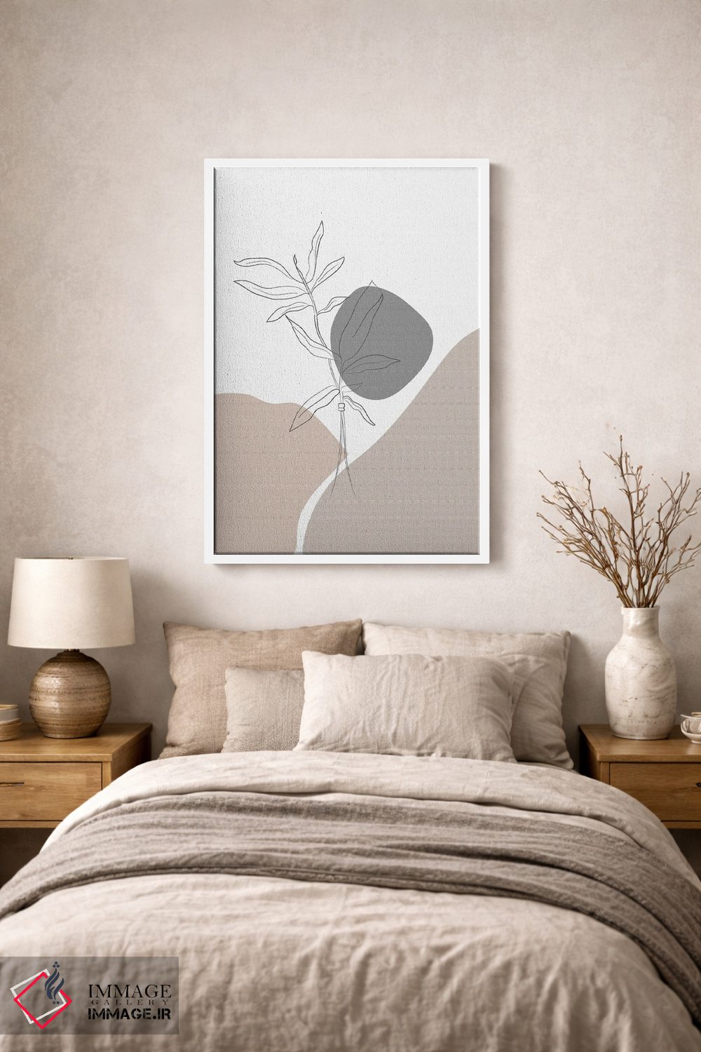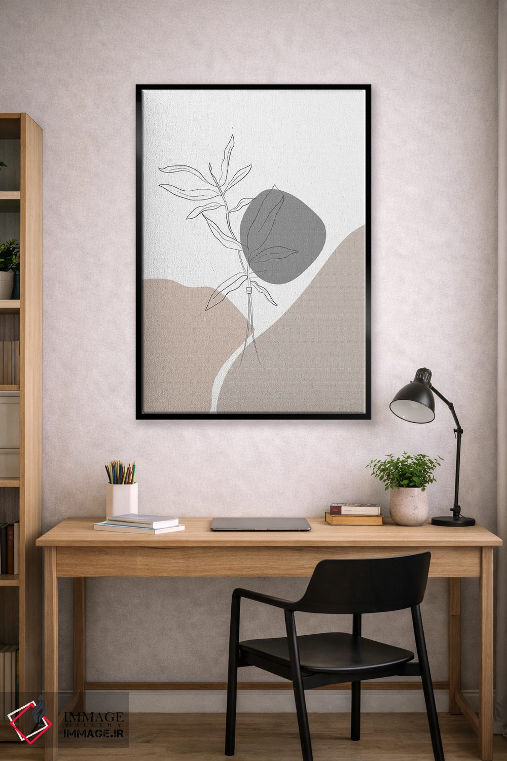 براساس پالت خنثی اثر، قاب مشکی مات (فریم باریک) پیشنهاد اول است و سفید مات (فریم باریک) مکمل. برای سفارشهای پروژهای با ابعاد و قابهای اختصاصی با ایماژ در تماس باشید.
