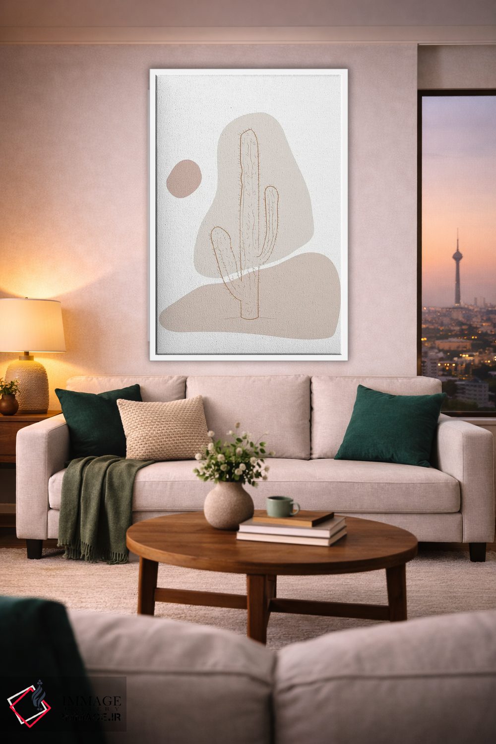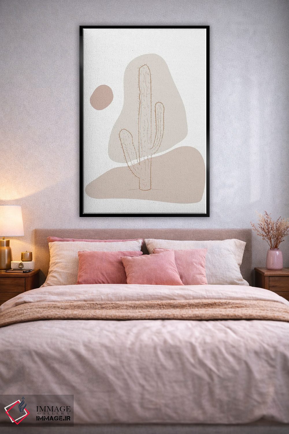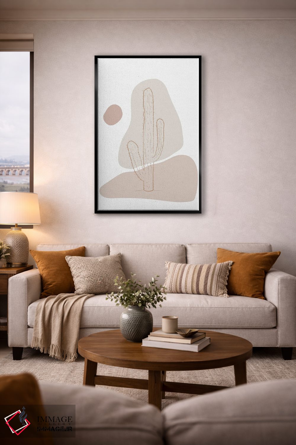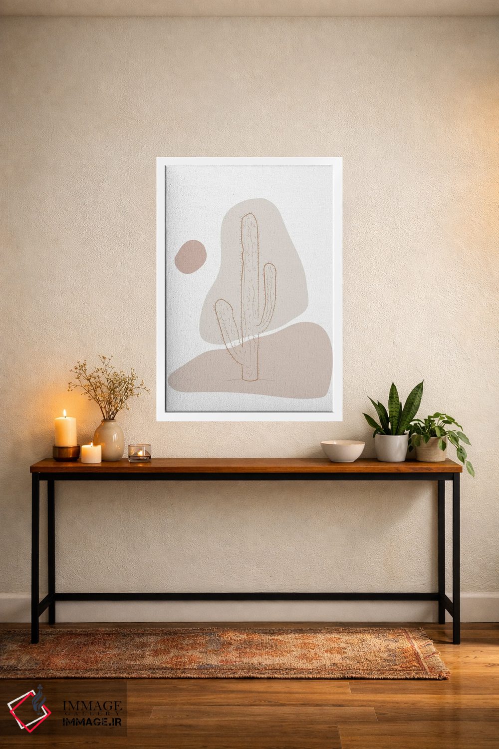 براساس پالت خنثی اثر، قاب بلوط روشن (چوبی) پیشنهاد اول است و استخوانی ملایم مکمل. برای سفارشهای پروژهای با ابعاد و قابهای اختصاصی با ایماژ در تماس باشید.