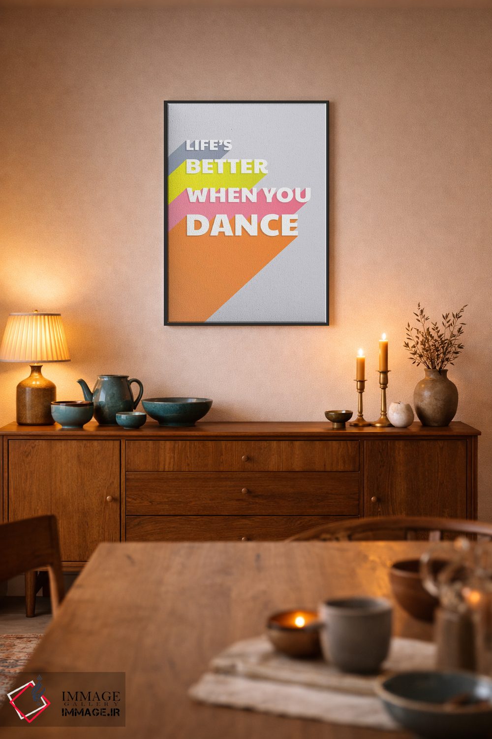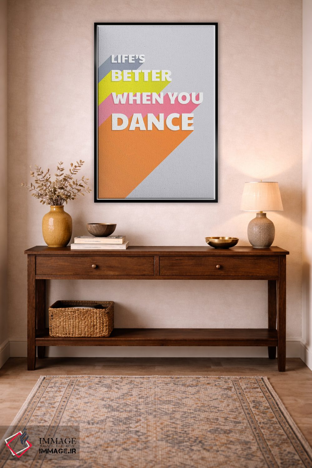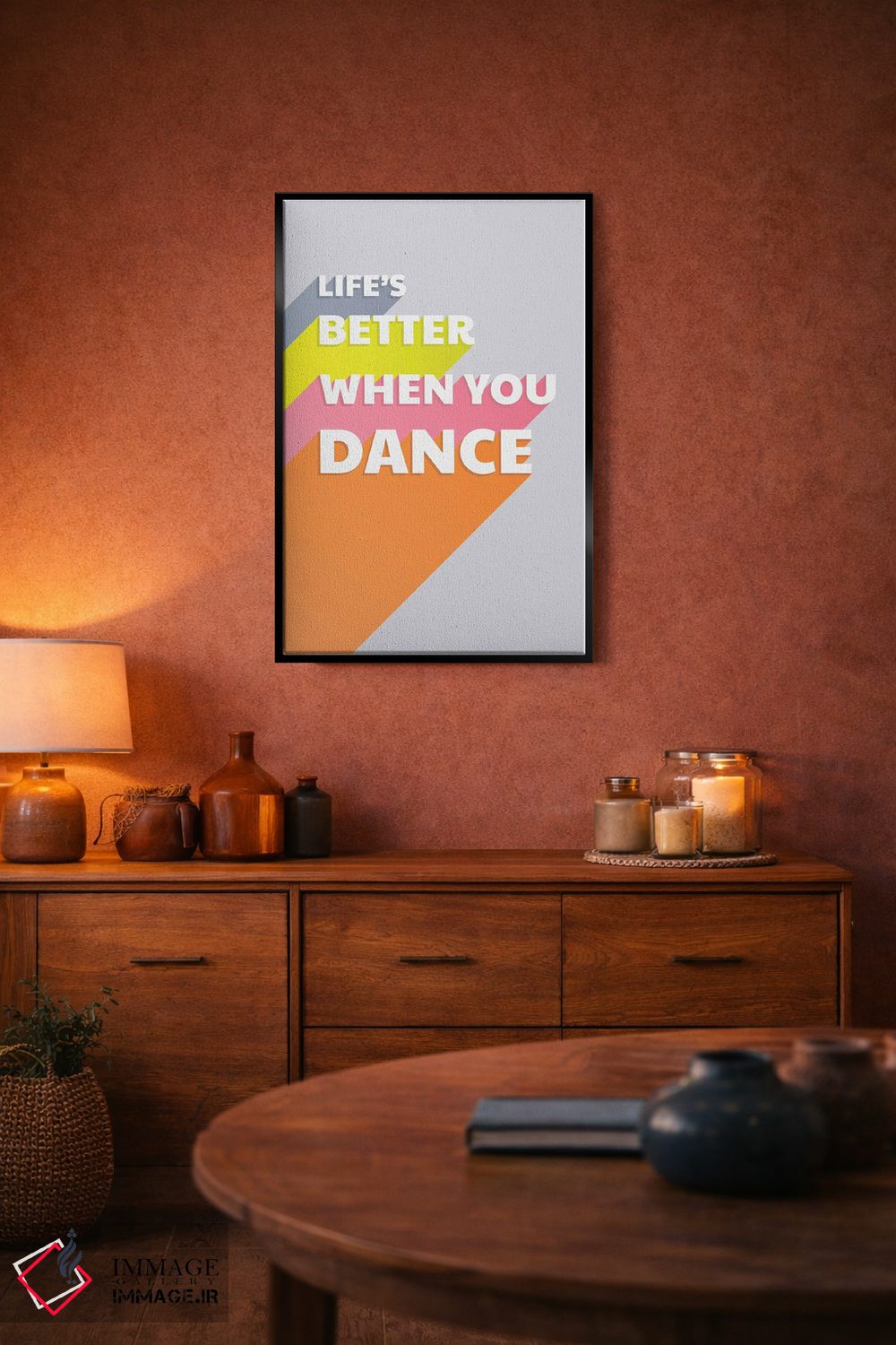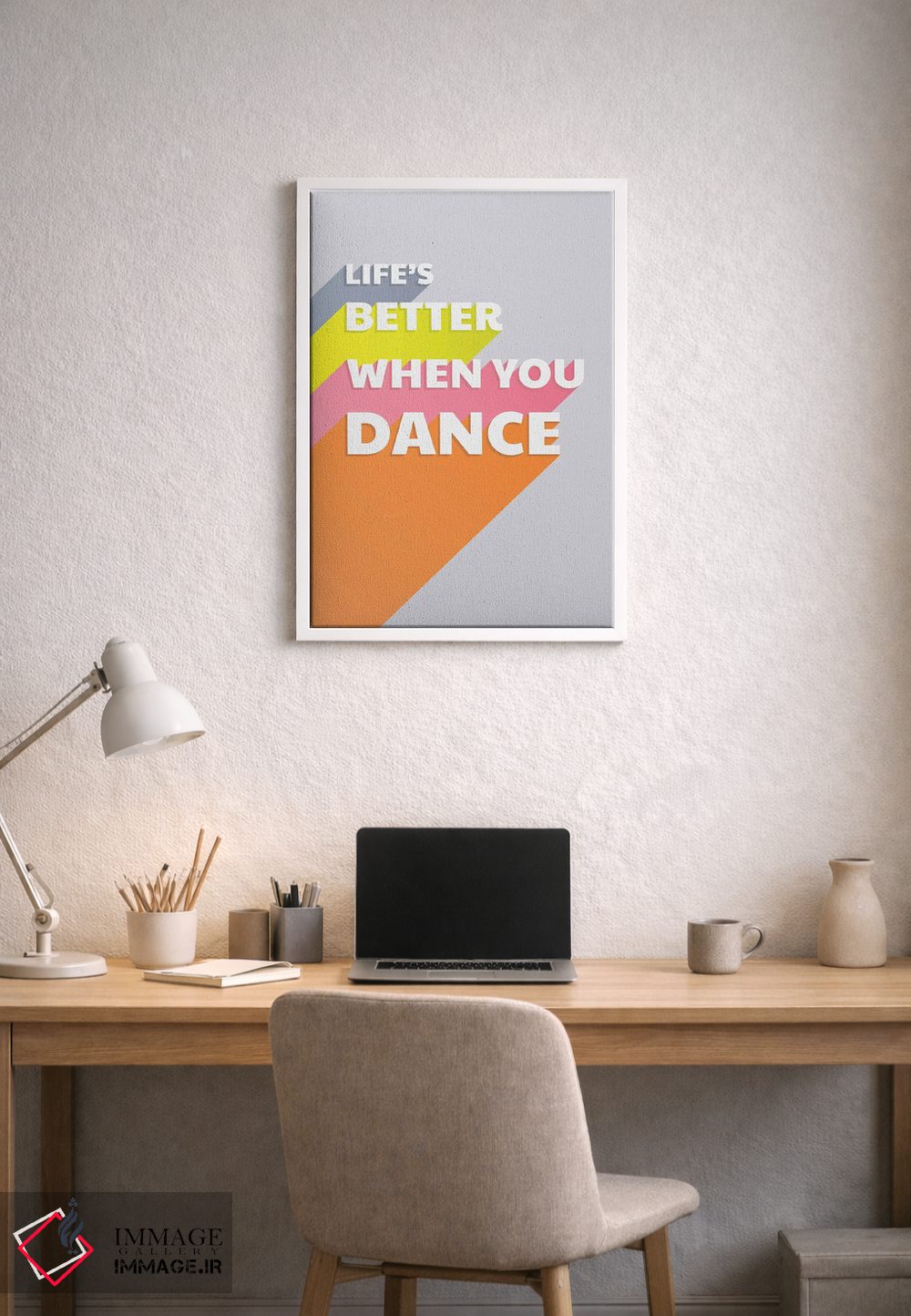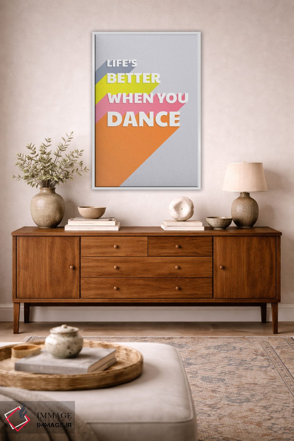 اگر دوست دارید دیوار «حرف بزند»، «زندگی با رقص بهتر است (تایپوگرافی)» اثرِ «شو میمارس (برند هنری)» با پرداختی هنری انتخاب دقیقی است.