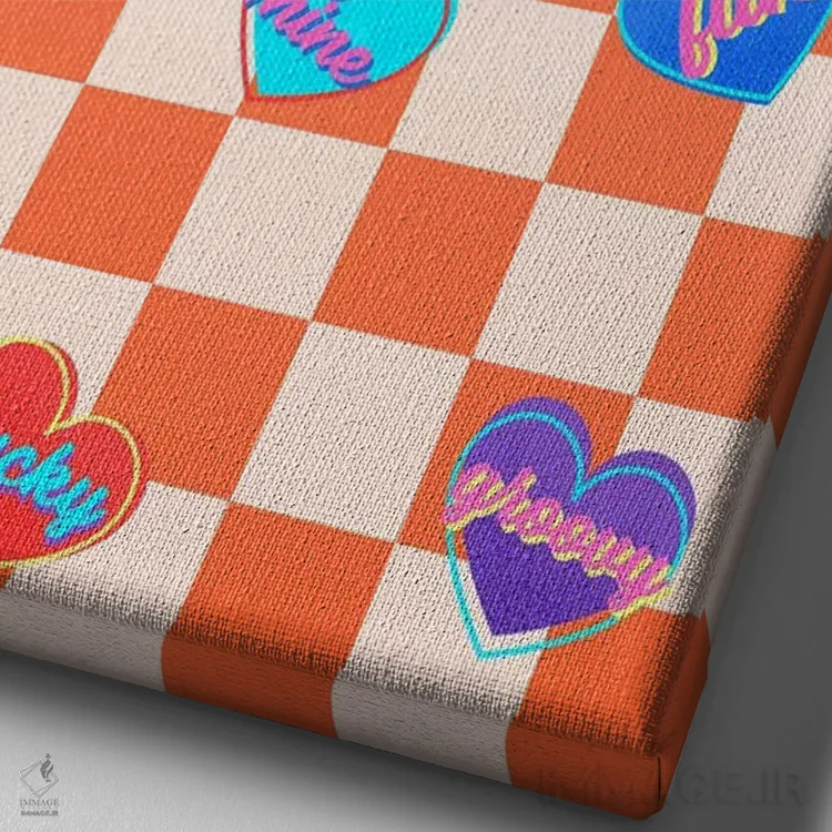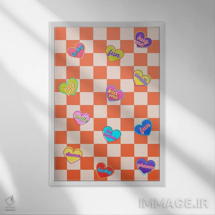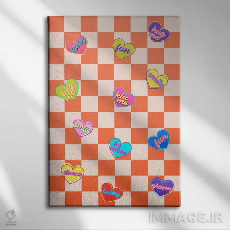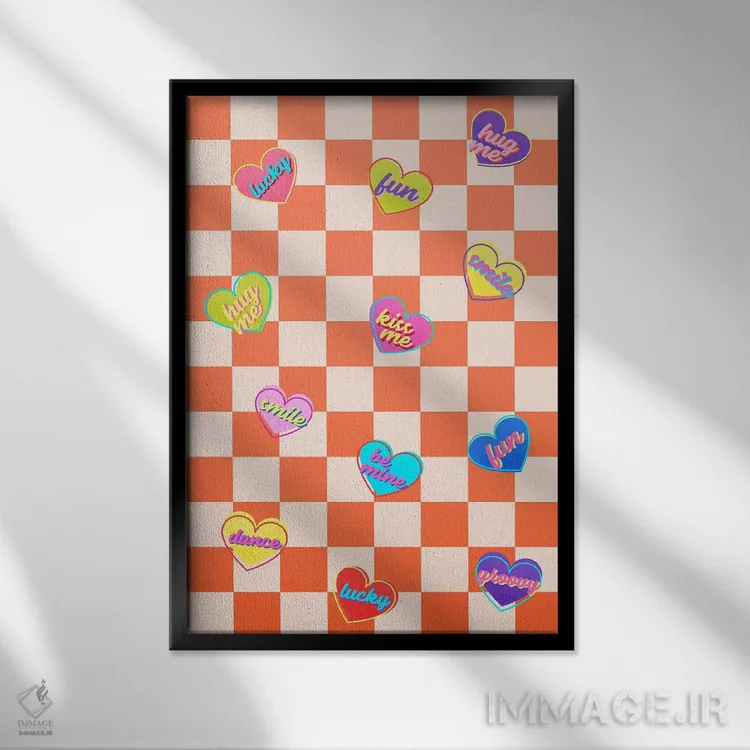 تابلو دکوراتیو آبنبات های قلبی روی شطرنجی نارنجی اثر شو می مارس