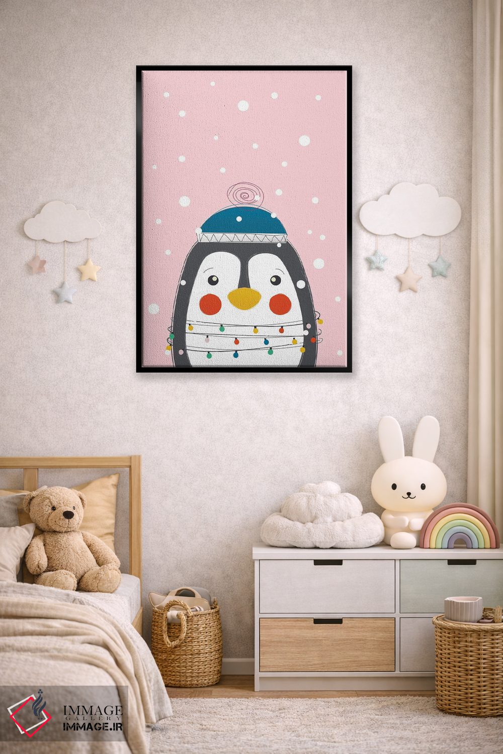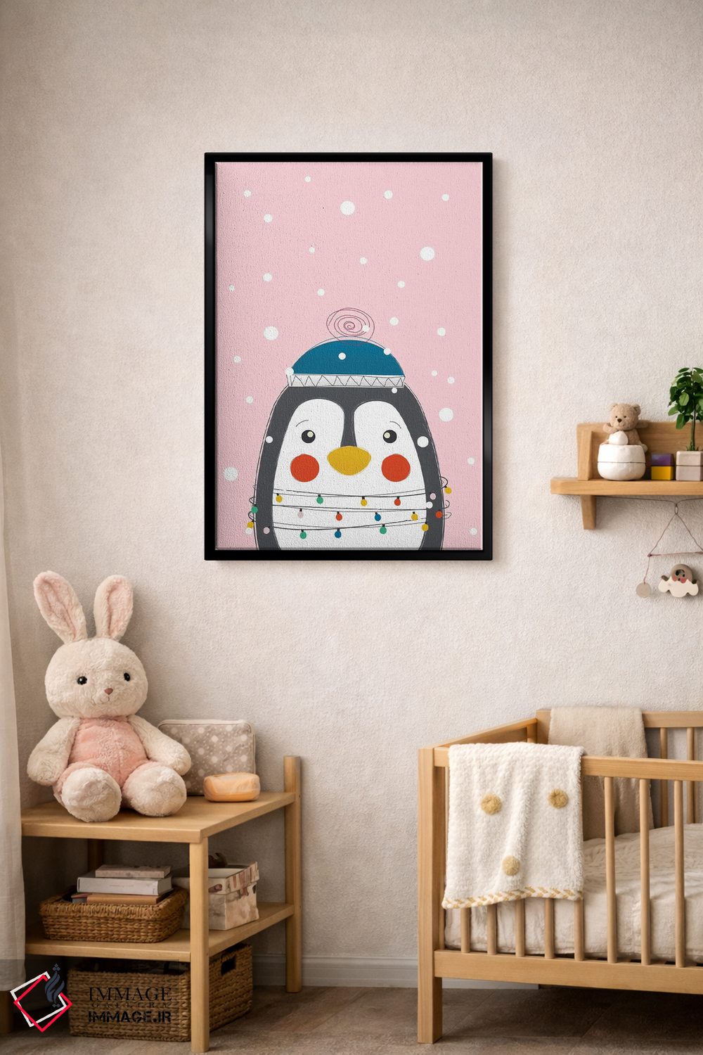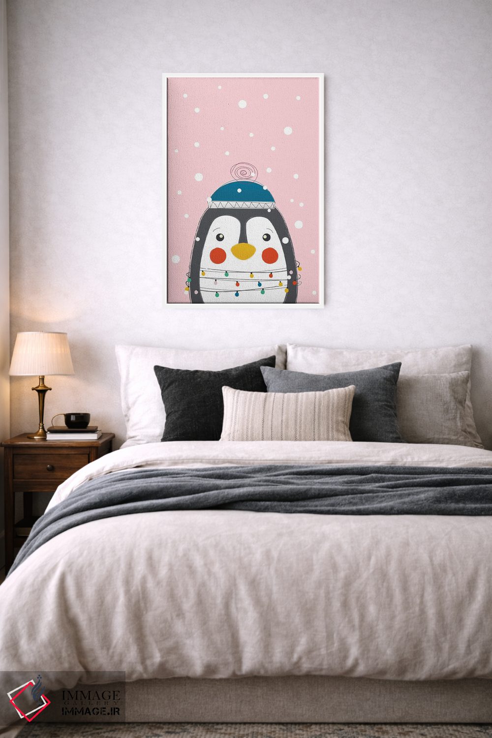اگر به آثار حیوانات علاقه دارید، «پنگوئن بامزه حیوانات کریسمس» اثرِ «شو میمارس (برند هنری)» فضا را صمیمیتر و دعوتکنندهتر نشان میدهد، برای کافههای کوچک و صمیمی گزینهٔ مناسبیست. هر بار نگاهش میکنید، یک جزئیات تازه به چشم میآید.
