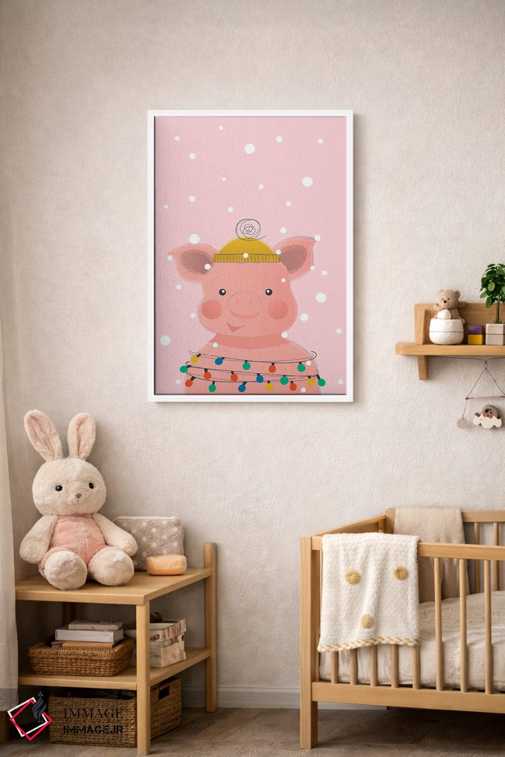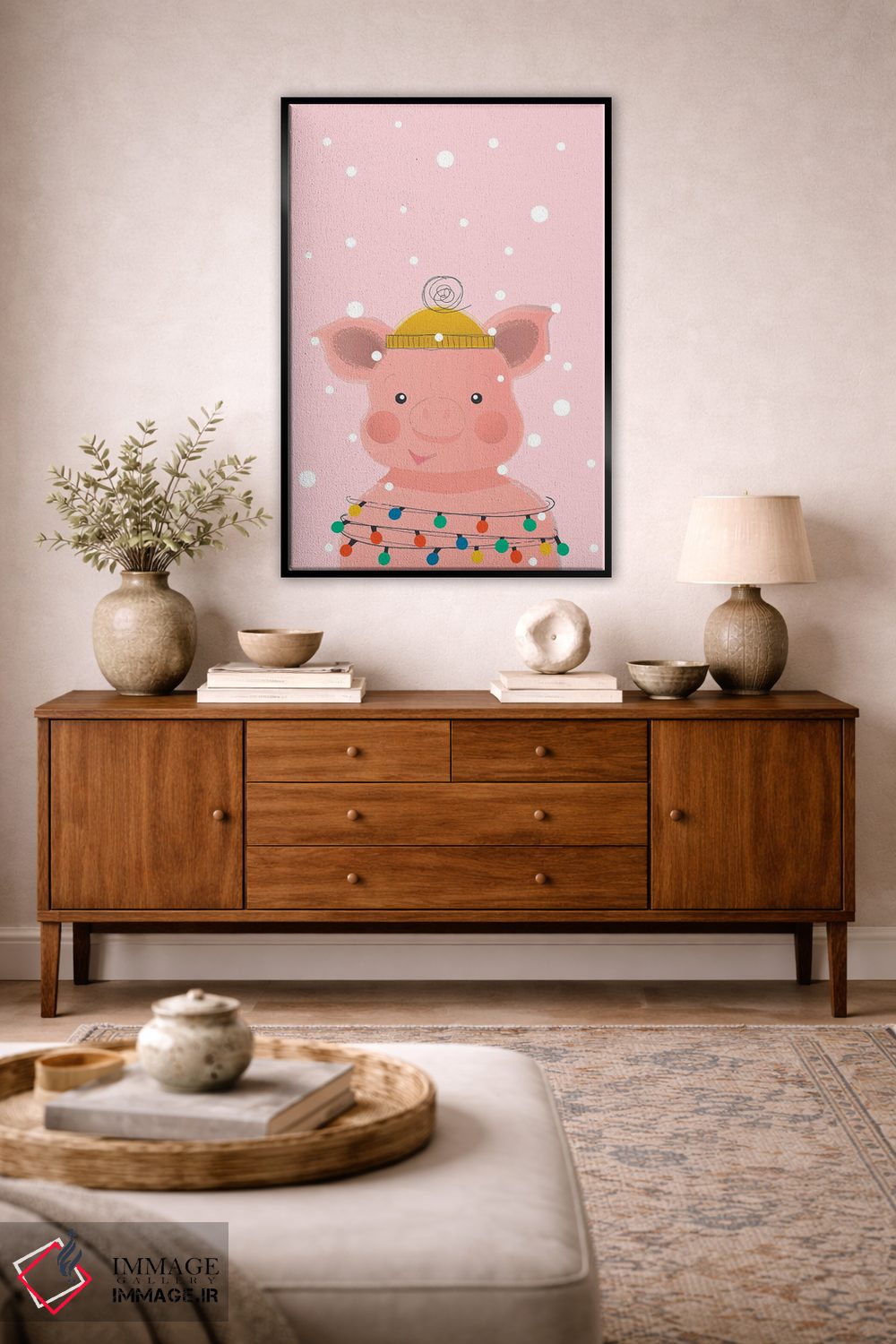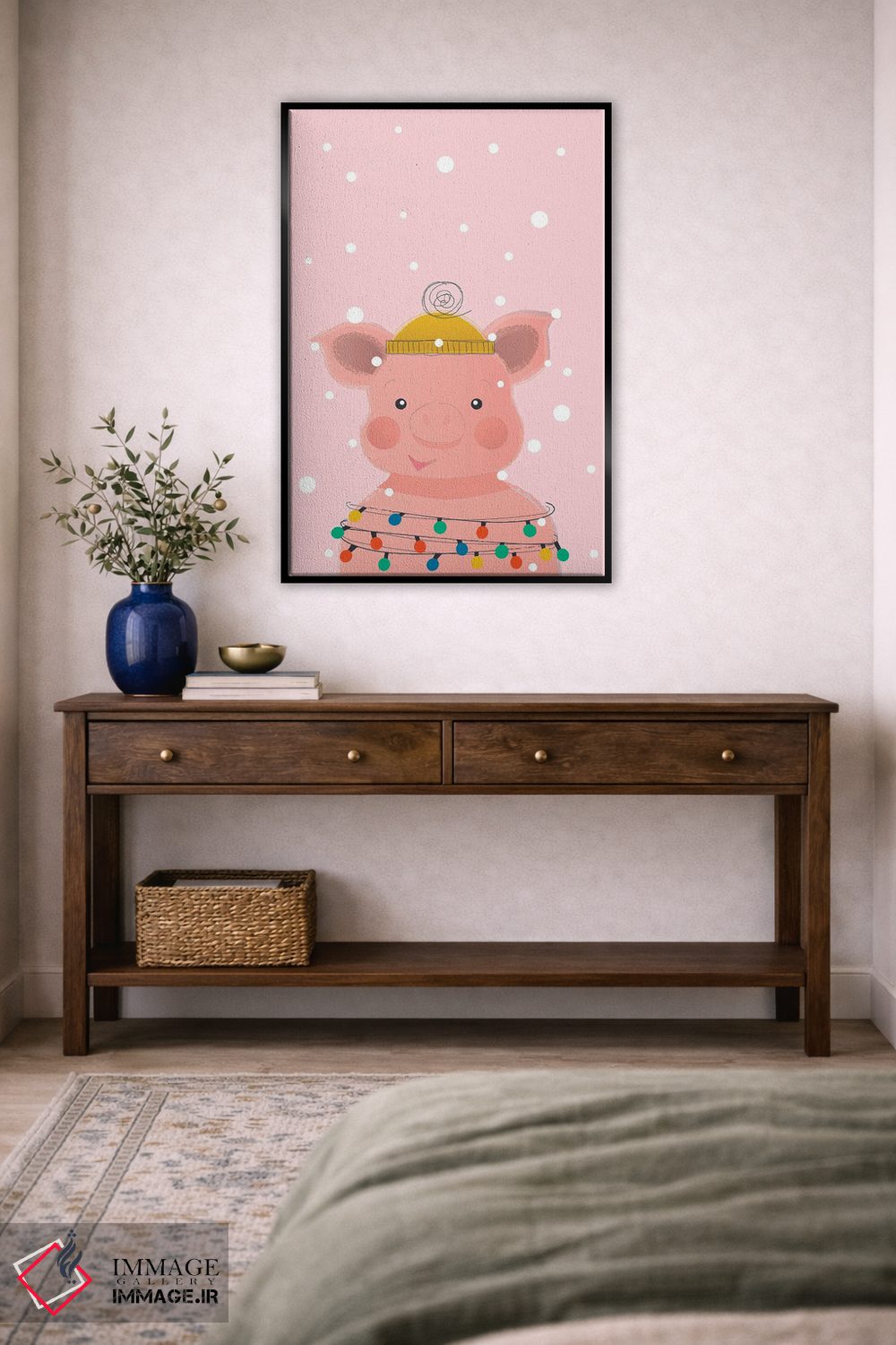 تابلو دکوراتیو خوک بامزه حیوانات کریسمس اثر شو می مارس