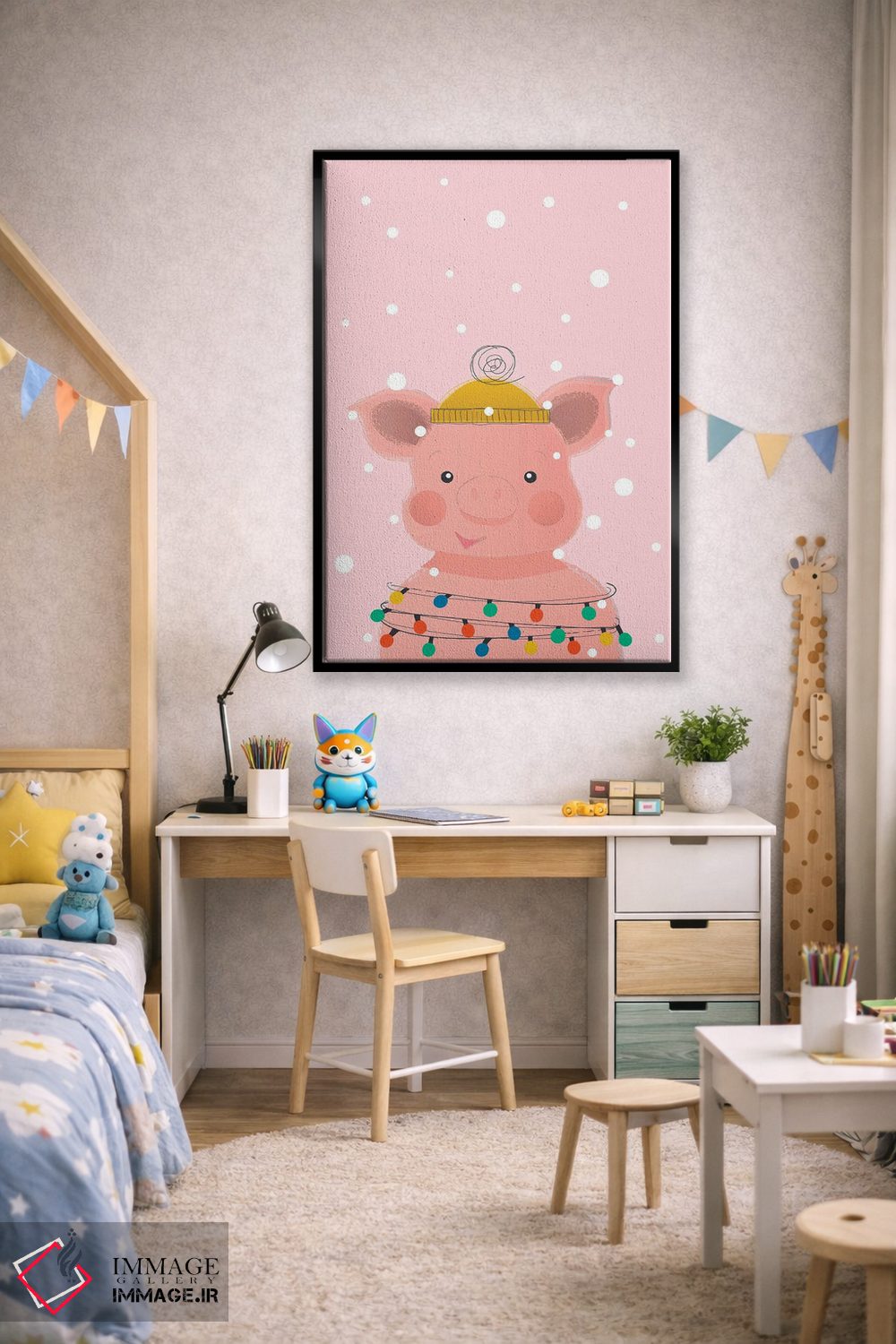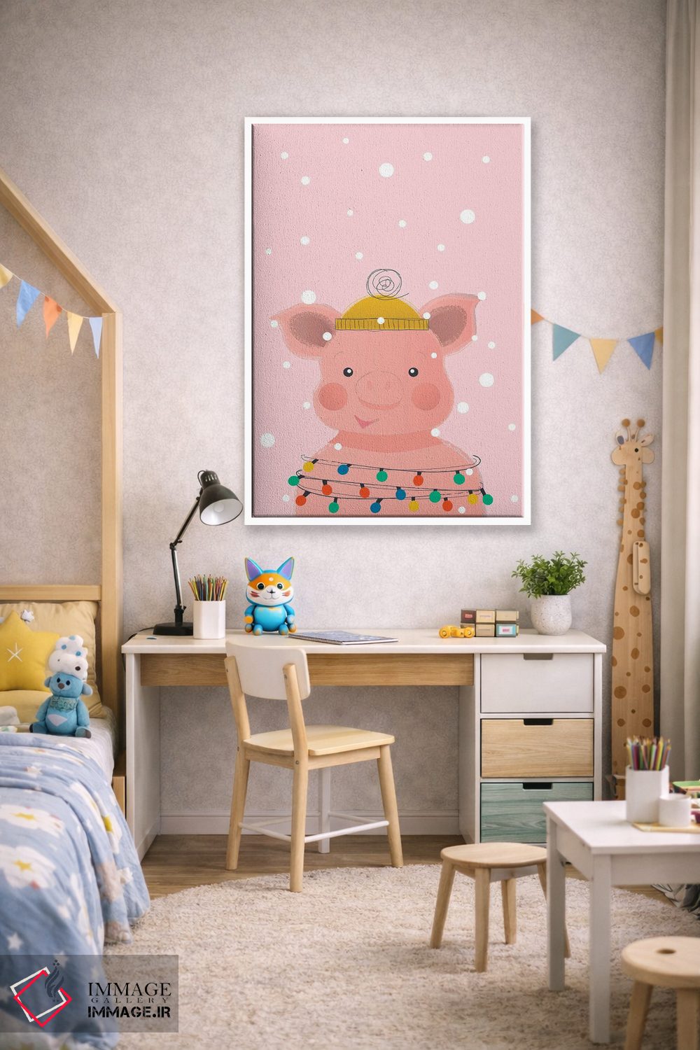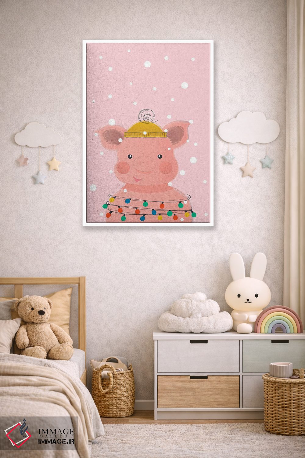 تابلو دکوراتیو خوک بامزه حیوانات کریسمس اثر شو می مارس
