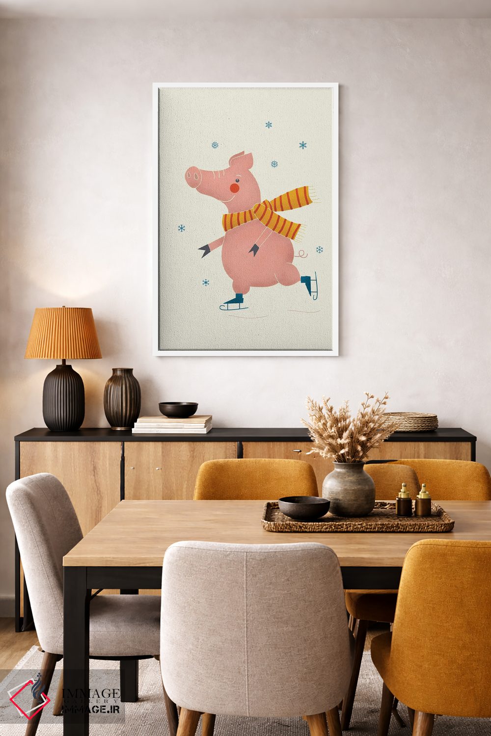 «خوک اسکیتباز روی یخ» اثرِ «شو میمارس (برند هنری)» یک انتخاب مطمئن و هماهنگپذیر برای هدیهدادن به دوستداران حیوانات است.