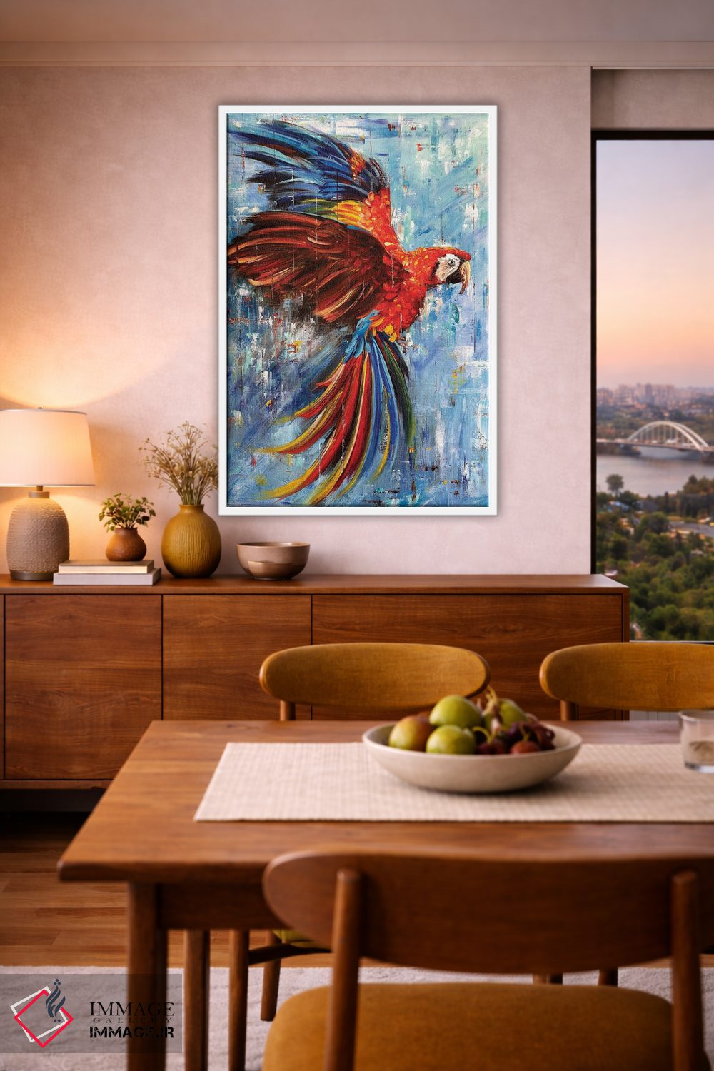 «درخشش پرواز» اثرِ «مارینا اسکرمووا» از آن کارهاییست که به دیوار، انرژیِ نرم و زنده میدهد؛ برای اتاق کودک (بدون لحن کودکانه) انتخاب خوبیست. برای دیوار گالریوار هم گزینهٔ خوبیست.