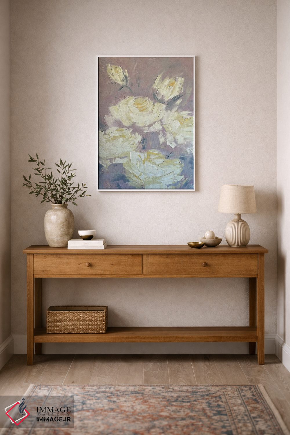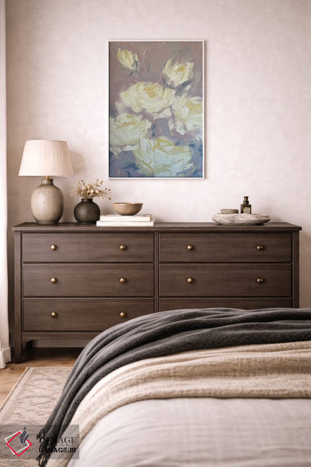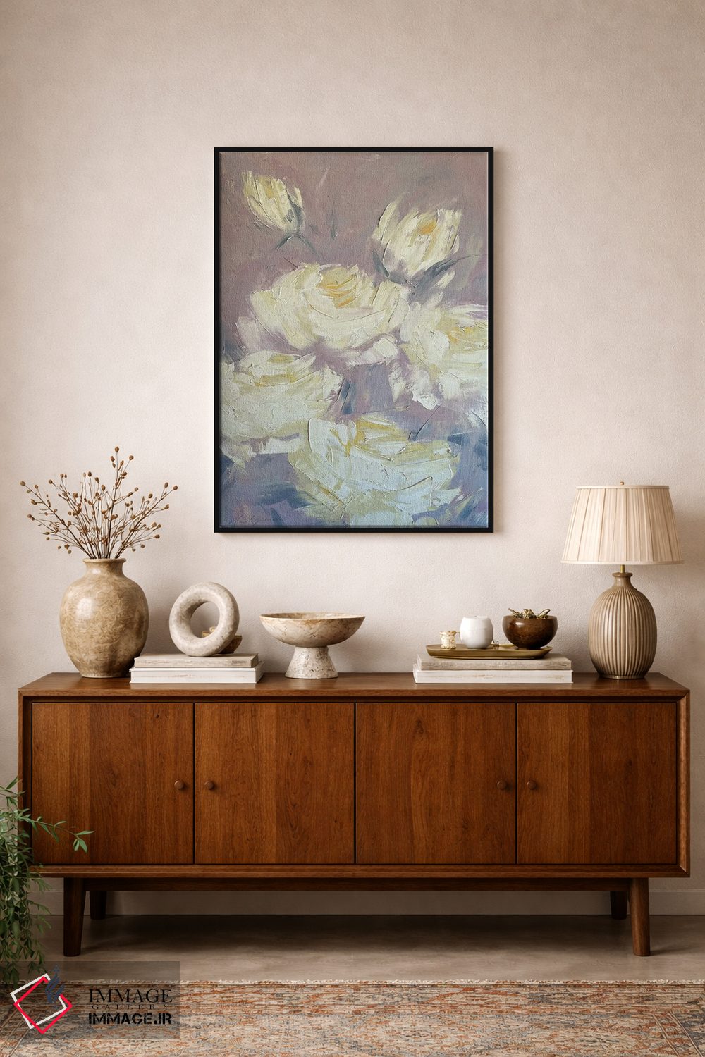 تابلو انتزاعی حس خامه ای دو اثر مارینا اسکرمووا - نمای قاب‌دار سفید