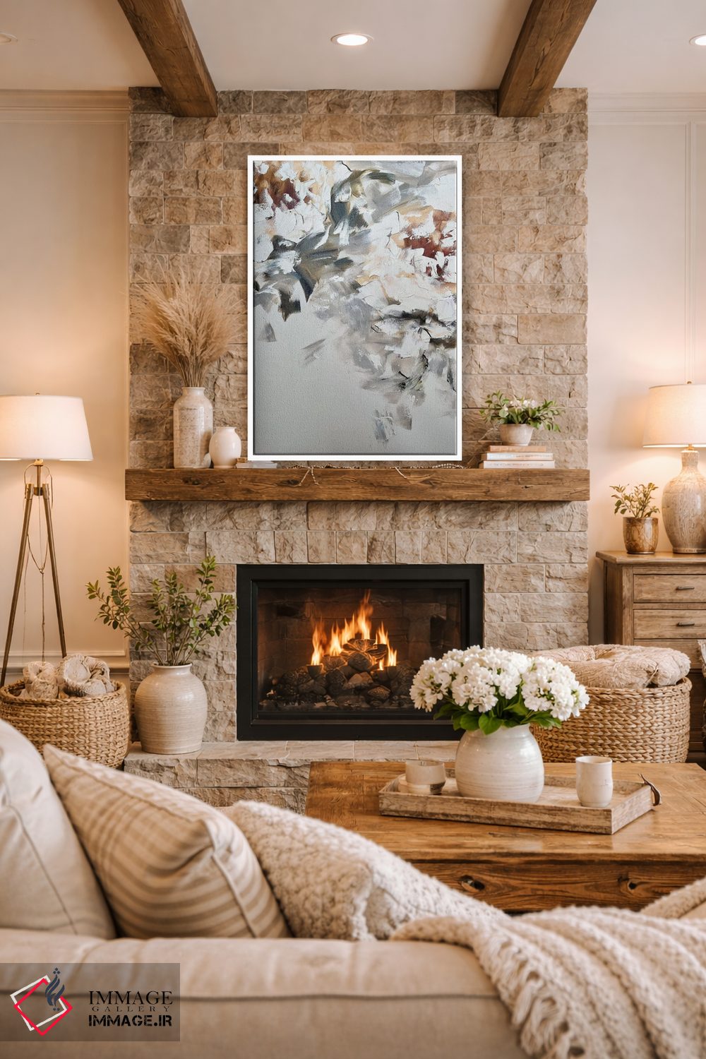 یک عنصر کوچک به رنگ خاکستری کافی است؛ در فرش یا پرده (بهصورت خیلی کم) بهکار ببرید تا تعادل بین گرم و سرد بهتر برقرار شود. انتخاب قاب هم میتواند این اکسنت را تقویت کند.