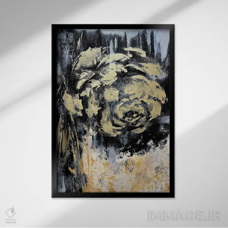 تابلو انتزاعی گل های طلایی شگفت انگیز اثر مارینا اسکرمووا - نمای قاب‌دار مشکی