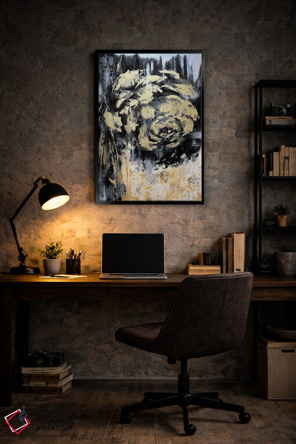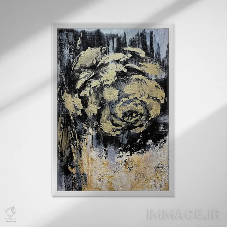 تابلو انتزاعی گل های طلایی شگفت انگیز اثر مارینا اسکرمووا - نمای پرسپکتیو محصول