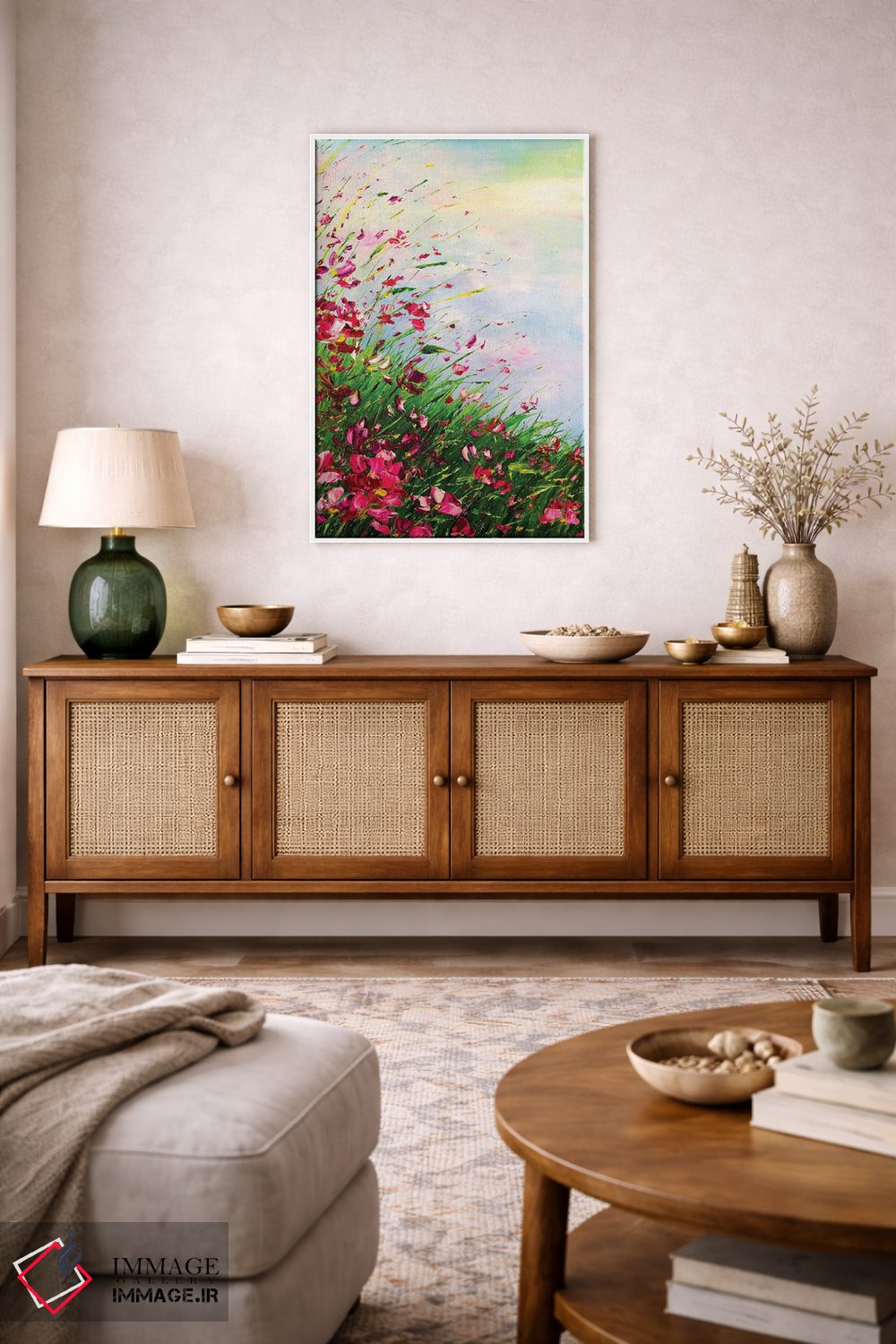 ساختار بوم گالری ایماژ طوری است که اثر روی دیوار «پرداختشده» و حرفهای دیده شود—نه پرزرقوبرقِ بیپایه؛ بلکه دقیق و خوشپرداخت. بافت ظریف کنواس کمک میکند حس اثر هنری را در نگاه نزدیک نگه میدارد بهخصوص وقتی نور موضعی ملایم داشته باشید. کنترل تونها کمک میکند تعادل بهتری بین نور و رنگ ایجاد میکند. اگر دوست دارید قاب هم اضافه شود، میتوانید از گزینههای سایت استفاده کنید یا برای انتخاب سفارشی هماهنگ کنید؛ همراهِ نورپردازی درست، جلوهی گالریوار بیشتری حس میشود.