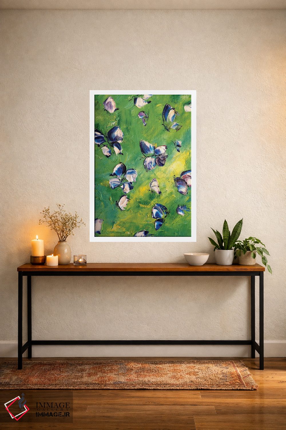 طراحی بوم گالری ایماژ بهگونهای است که اثر روی دیوار «پرداختشده» و حرفهای دیده شود—نه پرزرقوبرقِ بیپایه؛ بلکه دقیق و خوشپرداخت. بافت ظریف کنواس باعث میشود حس اثر هنری را در نگاه نزدیک نگه میدارد بدون اغراق؛ فقط دقیقتر. با قابپذیری، میتواند اثر را نقطهٔ کانونی محیط کند و همین «پرداخت» تفاوت را بسازد. برای سفارش اندازه یا قاب متفاوت، تیم ایماژ راهنمایی میکند تا انتخاب نهایی هماهنگتر باشد؛ و اگر بخواهید، میتوان چیدمان را برای گالریوال هم پیشنهاد داد. اگر یک اکسنت رنگی کوچک در اکسسوریها تکرار شود، هماهنگی فضا کاملتر میشود.