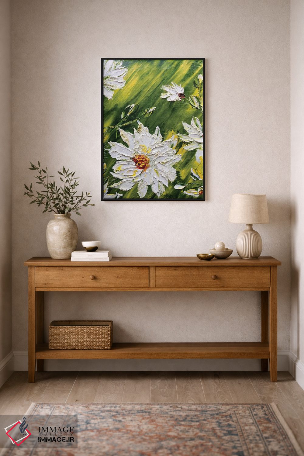 در بوم گالری ایماژ، همهچیز طوری طراحی شده که اثر روی دیوار «پرداختشده» و حرفهای دیده شود—نه پرزرقوبرقِ بیپایه؛ بلکه دقیق و خوشپرداخت. بافت ظریف کنواس باعث میشود حس اثر هنری را در نگاه نزدیک نگه میدارد و نتیجه را یکدستتر میکند. قابپذیری باعث میشود قاب مناسب مرز بصری تمیزتری به اثر میدهد. در نهایت، نتیجه چیزی شبیه تفاوت نسخهی معمولی با نسخهی باکیفیتتر است: نه رنگِ بیشتر، بلکه پرداخت بهتر؛ در محیطهای کاری، این نظم بصری خیلی به چشم میآید.