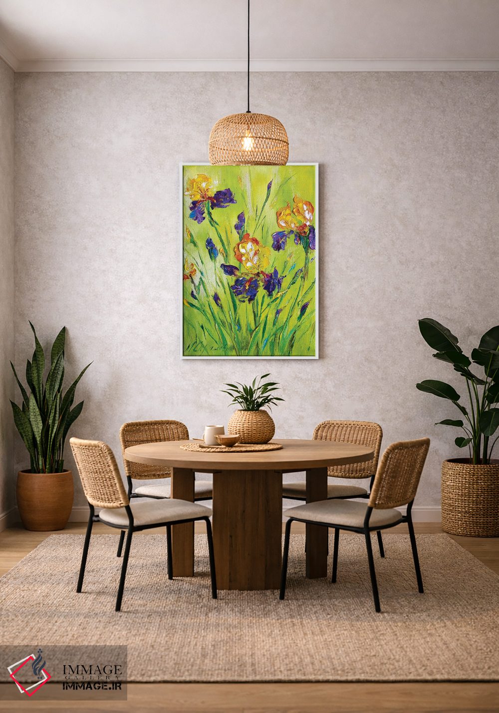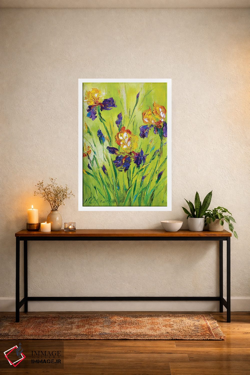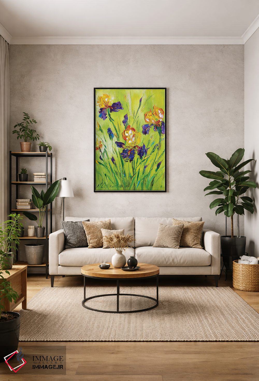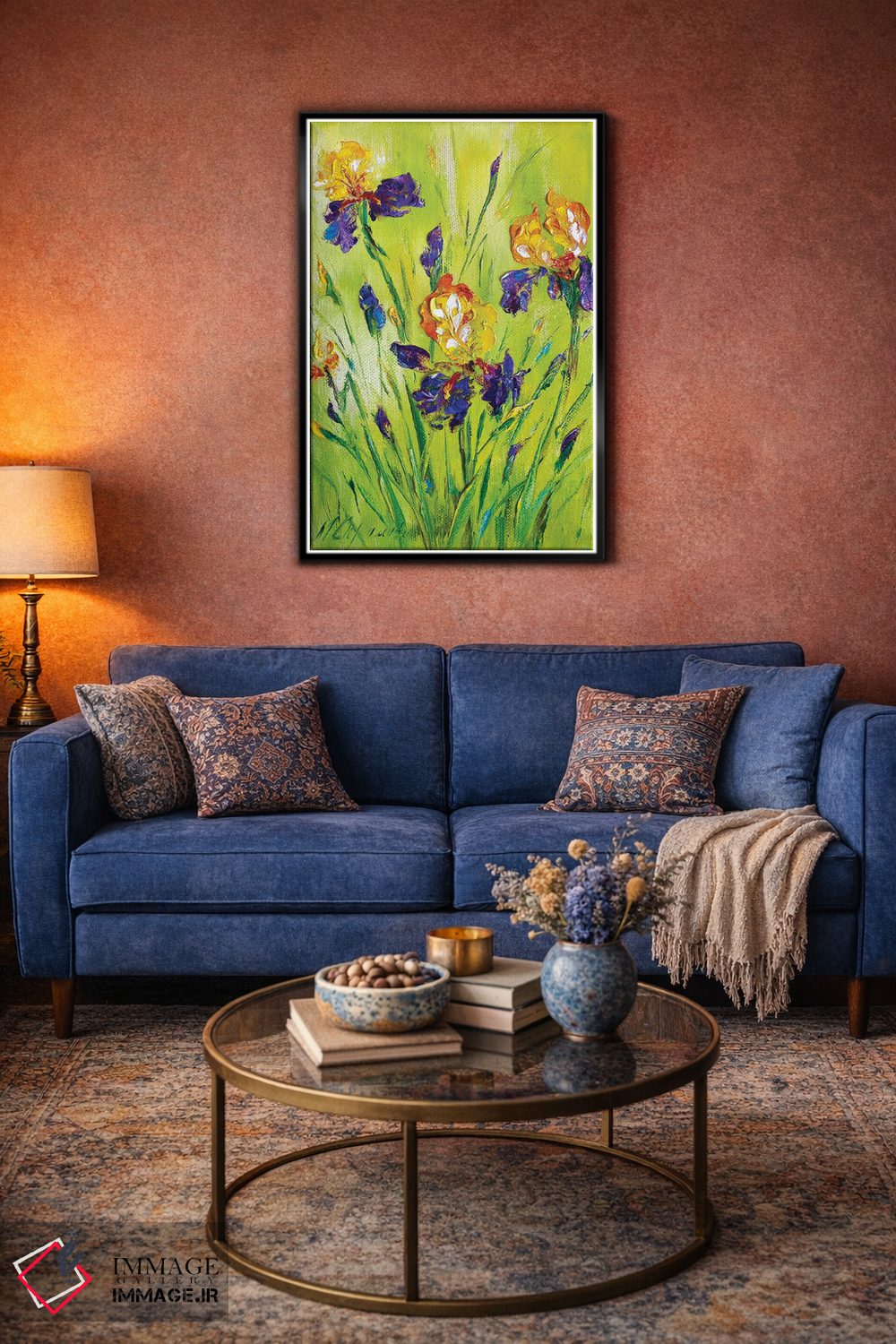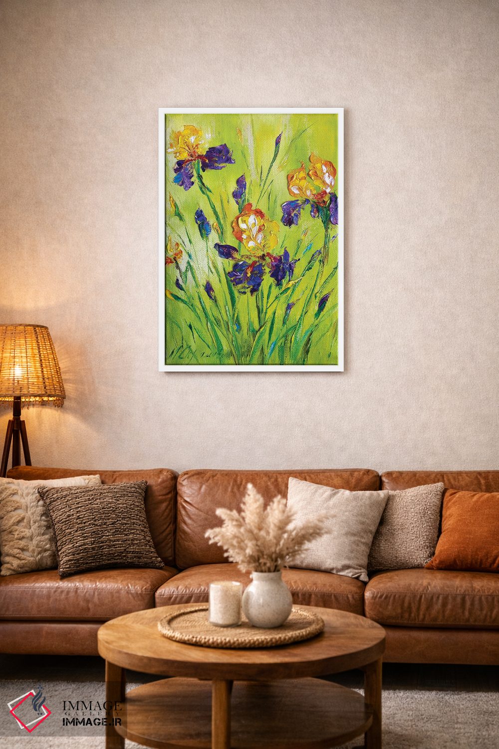 براساس پالت ترکیبی اثر، قاب تیک گرم (چوبی) پیشنهاد اول است و مشکی مات (فریم متوسط) مکمل. برای سفارشهای پروژهای با ابعاد و قابهای اختصاصی با ایماژ در تماس باشید.