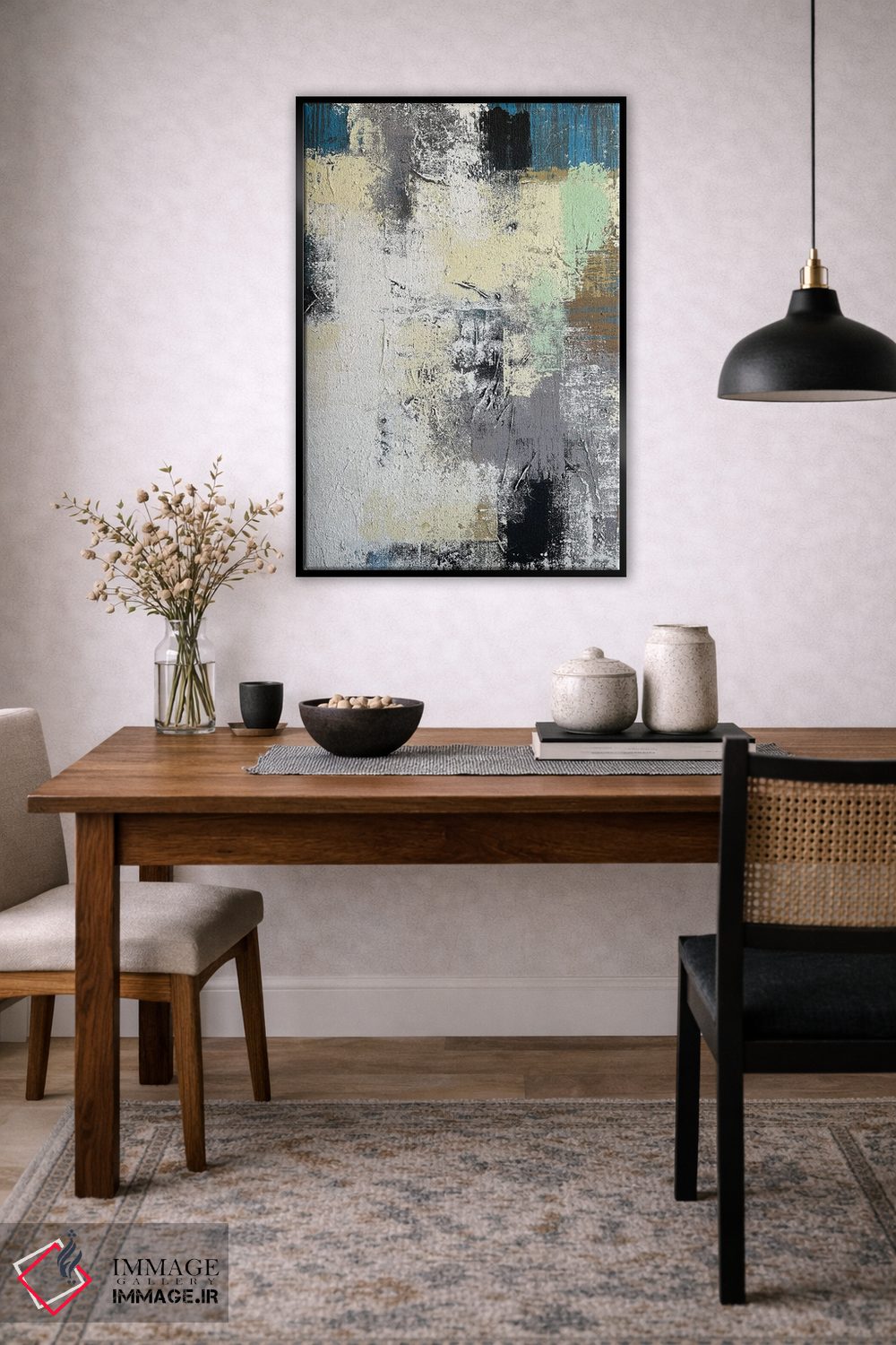 براساس پالت سرد اثر، قاب بلوط روشن (چوبی) پیشنهاد اول است و استخوانی ملایم مکمل. برای سفارشهای پروژهای با ابعاد و قابهای اختصاصی با ایماژ در تماس باشید.