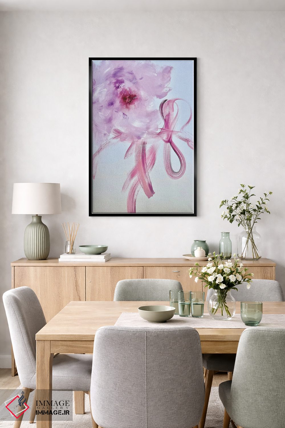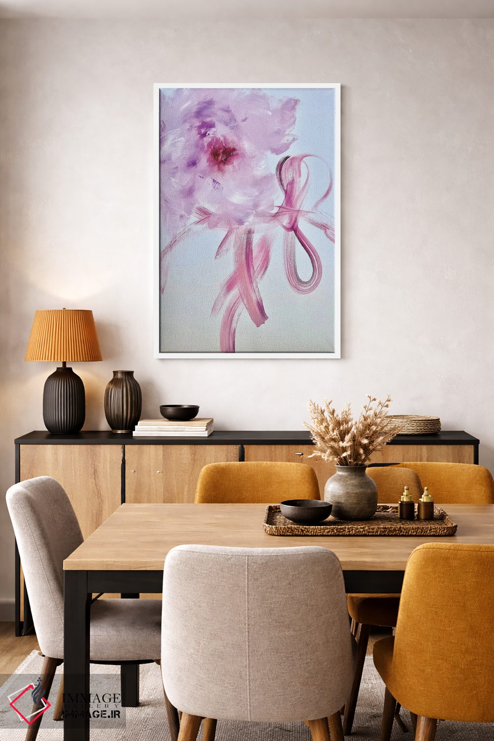 بوم گالری ایماژ طوری طراحی شده که اثر روی دیوار «پرداختشده» و حرفهای دیده شود—نه پرزرقوبرقِ بیپایه؛ بلکه دقیق و خوشپرداخت. با بافت ظریف کنواس، حس اثر هنری را در نگاه نزدیک نگه میدارد و برای فضاهای رسمیتر هم انتخاب مطمئنی است. بافت ظریف کنواس کمک میکند باعث میشود سطح کار زندهتر دیده شود بهخصوص وقتی نور موضعی ملایم داشته باشید. حاصل کار، یک تابلو خوشنشین است که هم از دور اثرگذار است و هم از نزدیک خوشخوان؛ و اگر بخواهید، میتوان چیدمان را برای گالریوال هم پیشنهاد داد. اگر یک اکسنت رنگی کوچک در اکسسوریها تکرار شود، هماهنگی فضا کاملتر میشود.