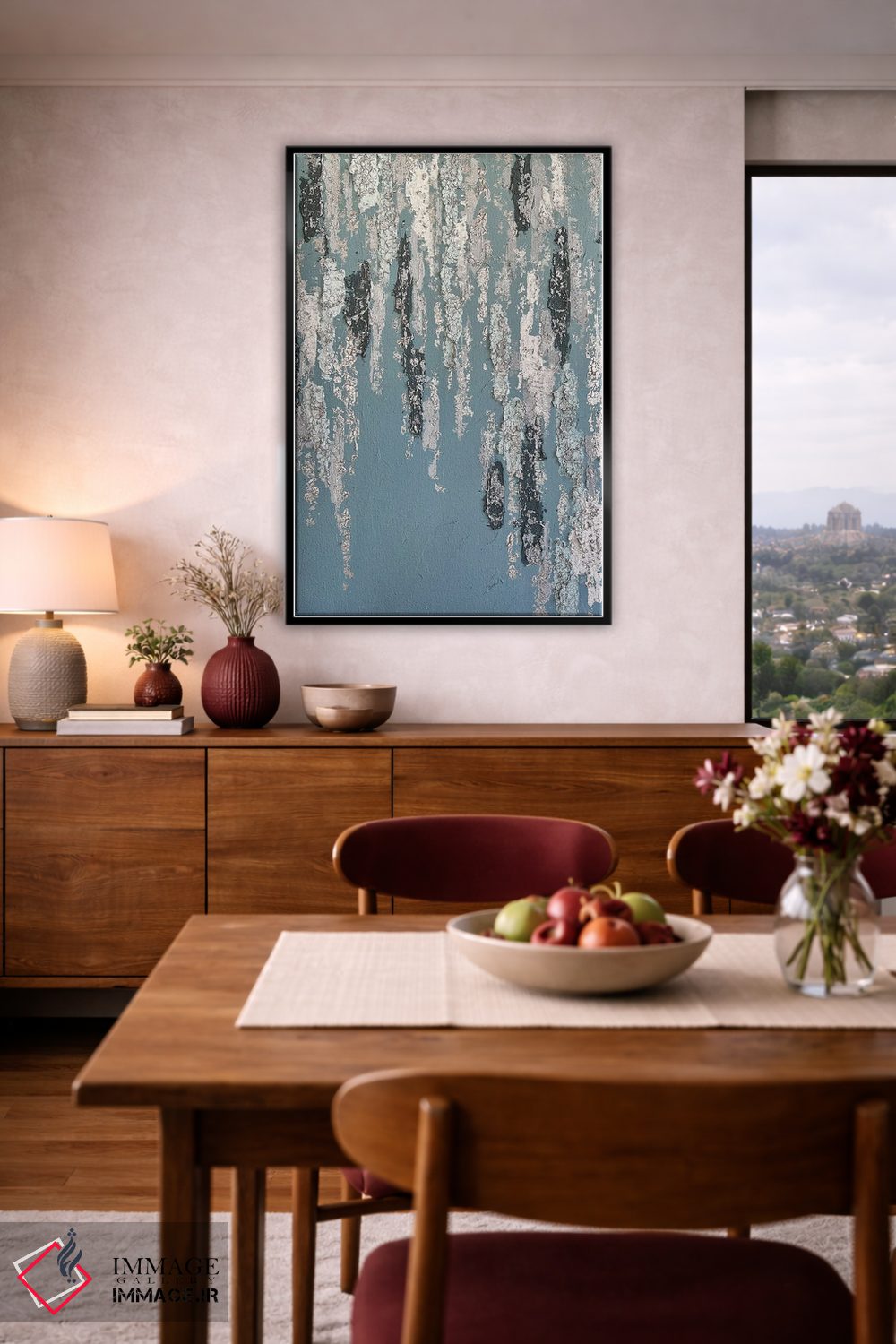 برای دیواری که دوست دارید «حرف داشته باشد»، «جنگل آبی» اثرِ «مارینا اسکرمووا» اتاق را جمعوجورتر و مرتبتر نشان میدهد؛ برای راهروها و ورودیهای مینیمال پیشنهاد میشود. حضورش روی دیوار «مرتب» است؛ نه پر سر و صدا، نه بیاثر.