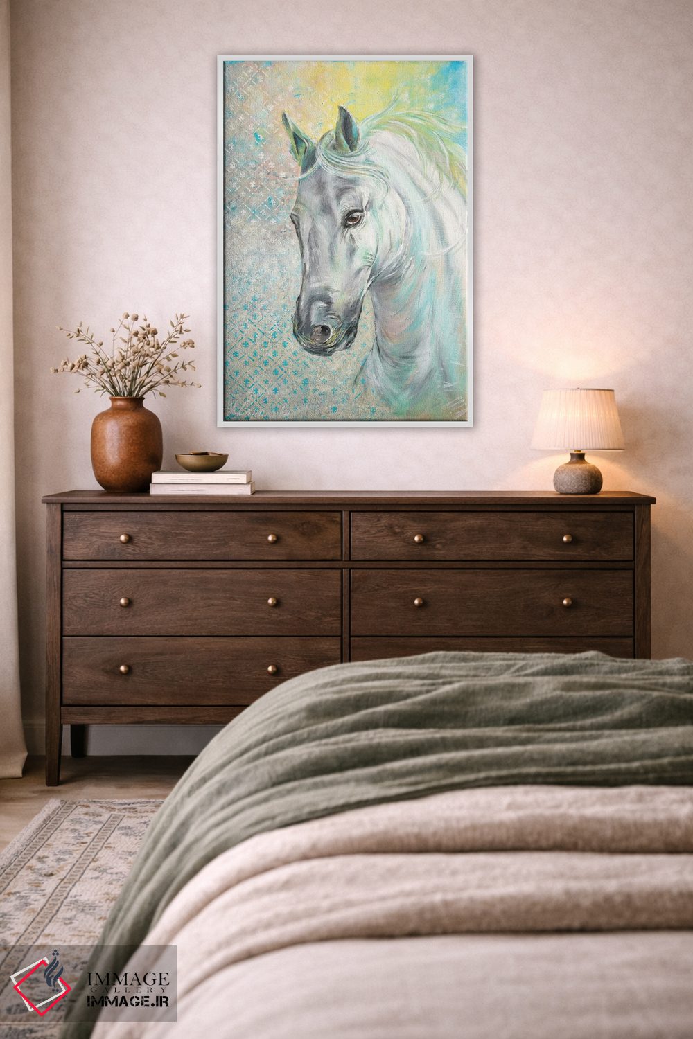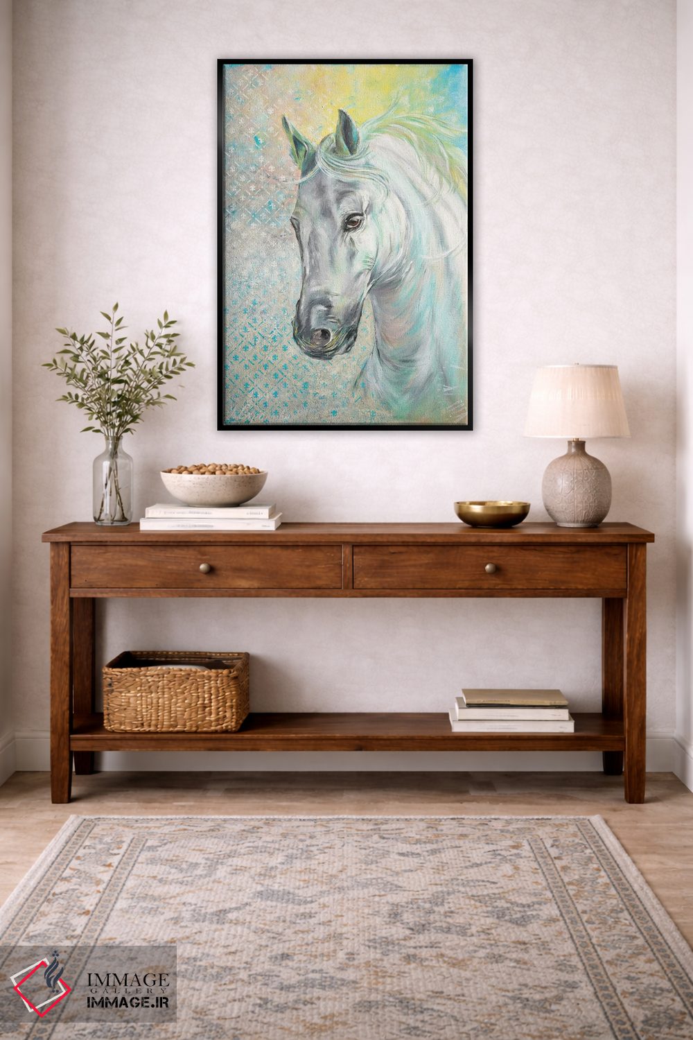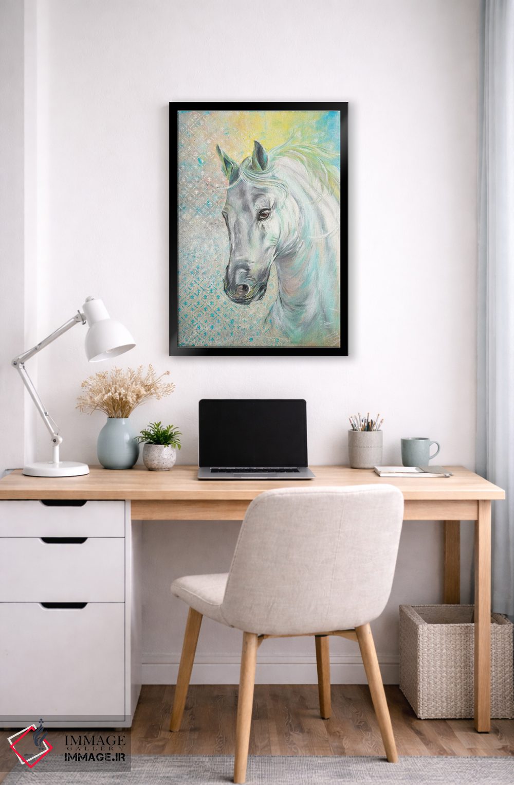 ساختار بوم گالری ایماژ طوری است که اثر روی دیوار «پرداختشده» و حرفهای دیده شود—نه پرزرقوبرقِ بیپایه؛ بلکه دقیق و خوشپرداخت. بافت ظریف کنواس کمک میکند حس اثر هنری را در نگاه نزدیک نگه میدارد بدون اغراق؛ فقط دقیقتر. در کنترل تونها، تعادل بهتری بین نور و رنگ ایجاد میکند و نتیجه را یکدستتر میکند. حاصل کار، یک تابلو خوشنشین است که هم از دور اثرگذار است و هم از نزدیک خوشخوان؛ در محیطهای کاری، این نظم بصری خیلی به چشم میآید.