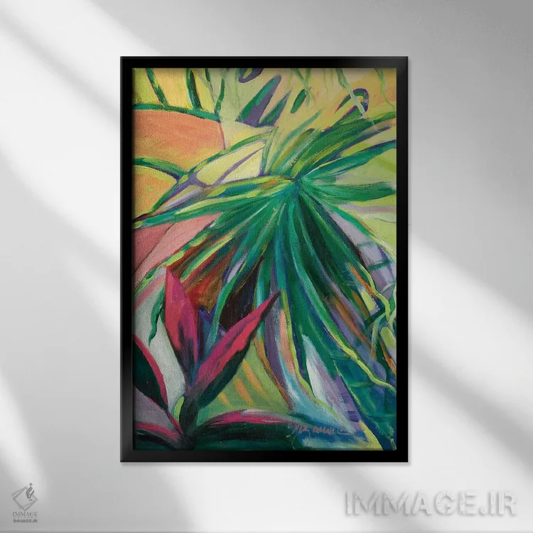 براساس پالت ترکیبی اثر، قاب تیک گرم (چوبی) پیشنهاد اول است و مشکی مات (فریم متوسط) مکمل. برای سفارشهای پروژهای با ابعاد و قابهای اختصاصی با ایماژ در تماس باشید.