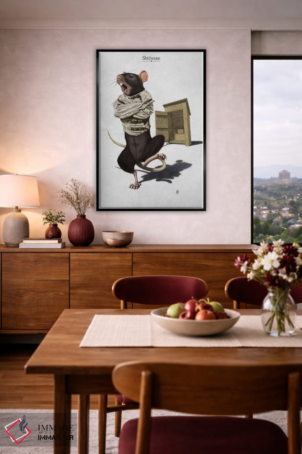 برای اتاقی که به یک عنصر دوستداشتنی نیاز دارد، «مستراح» اثرِ «راب اسنو» به دیوار، انرژیِ نرم و زنده میدهد؛ برای کافههای کوچک و صمیمی انتخابی خوشسلیقه است. هر بار نگاهش میکنید، یک جزئیات تازه به چشم میآید.
