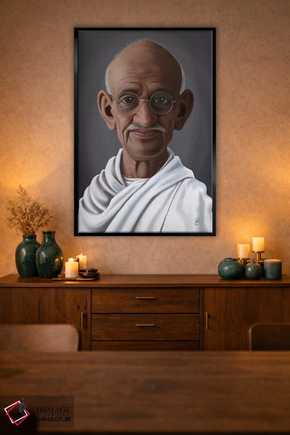 براساس پالت گرم اثر، قاب تیک گرم (چوبی) پیشنهاد اول است و مشکی مات (فریم متوسط) مکمل. برای سفارشهای پروژهای با ابعاد و قابهای اختصاصی با ایماژ در تماس باشید.