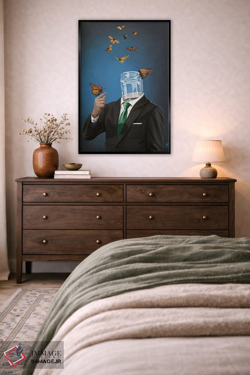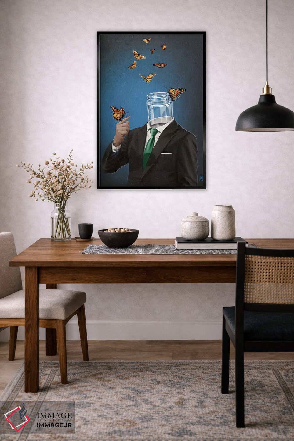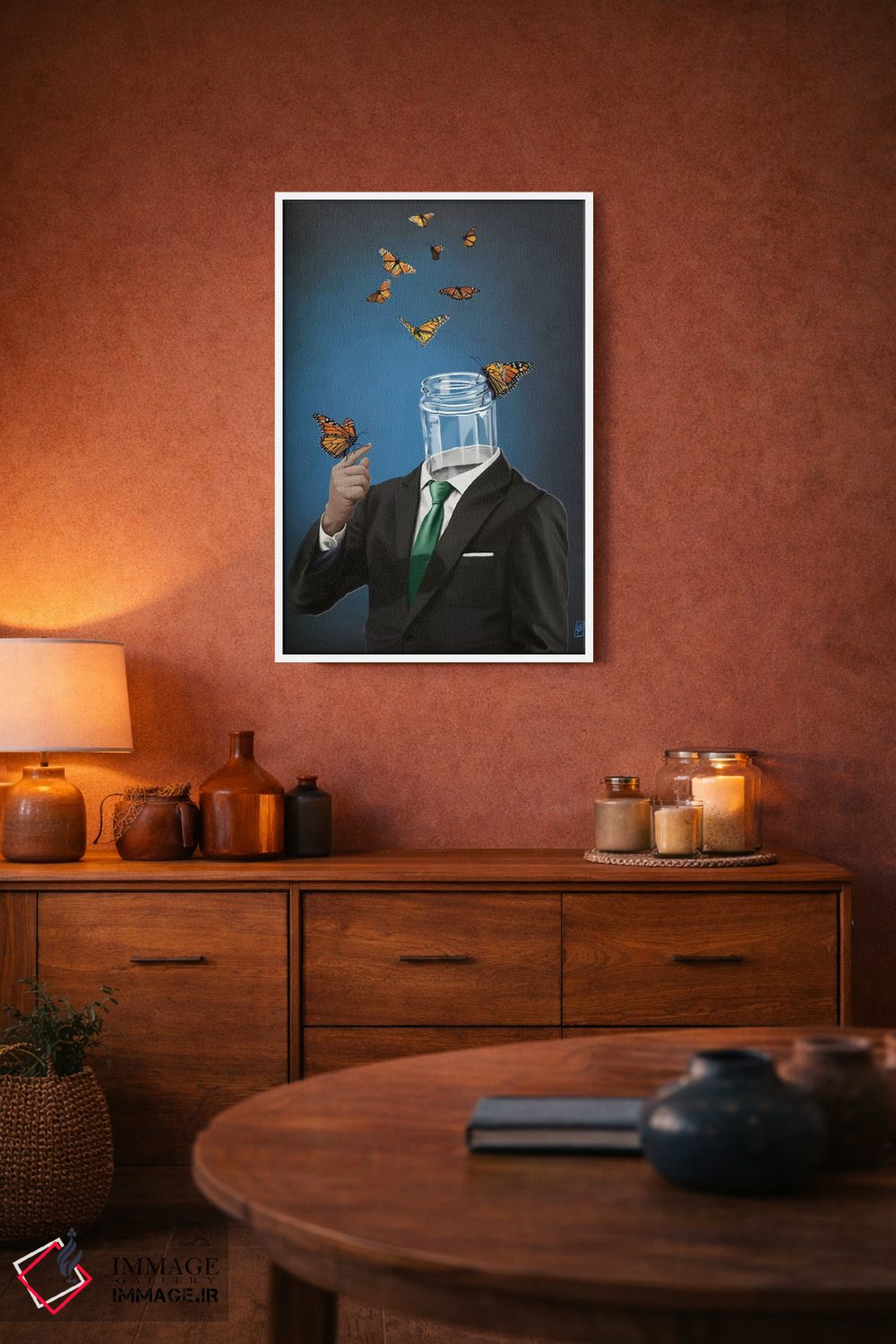 براساس پالت ترکیبی اثر، قاب تیک گرم (چوبی) پیشنهاد اول است و مشکی مات (فریم متوسط) مکمل. برای سفارشهای پروژهای با ابعاد و قابهای اختصاصی با ایماژ در تماس باشید.