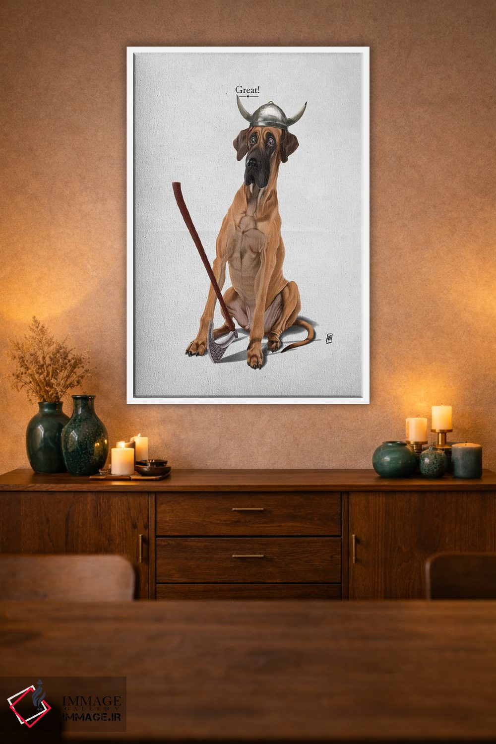 برای انتخاب قابهای متنوعتر، با ایماژ از طریق تماس—با—ما/">تماس با ما در ارتباط باشید تا نتیجه حرفهایتر دیده شود. اگر قرار است اثر در فضا «گرم و صمیمی» دیده شود، نور موضعی ملایم نتیجه را بهتر نشان میدهد و جلوهی گالریوار بیشتری میدهد.