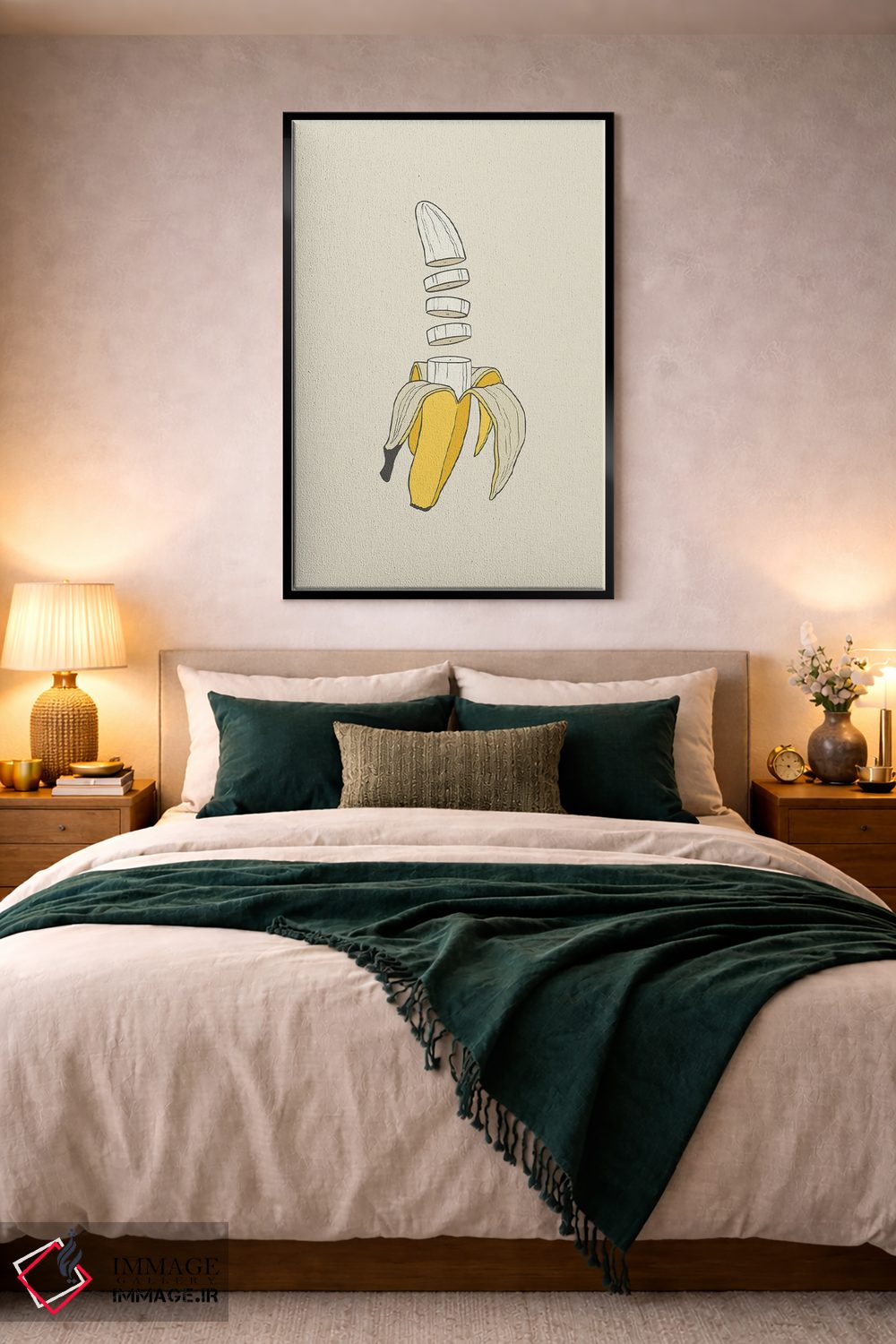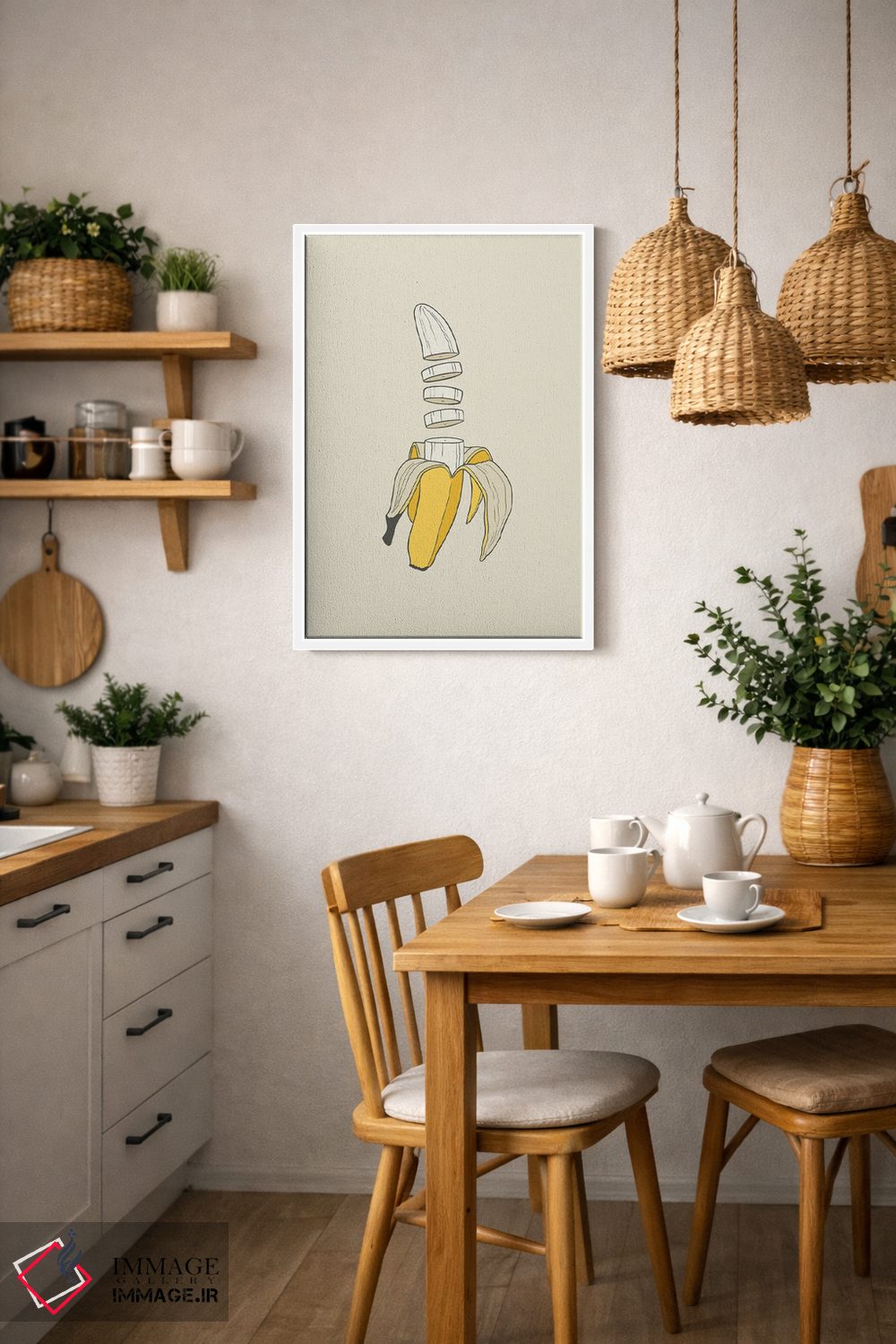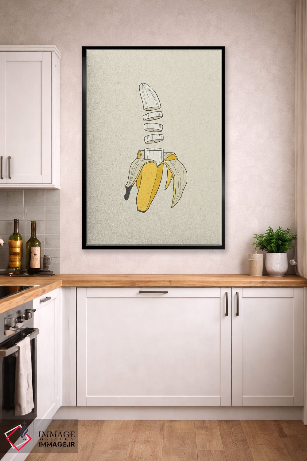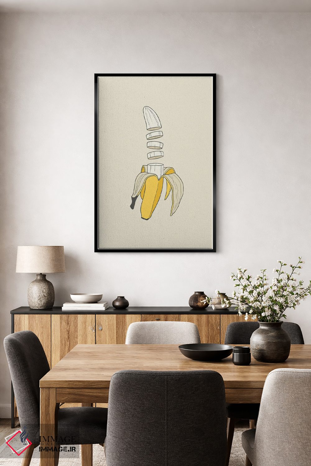 این تابلو با عنوان «بنانا اسپلیت (دسر موز و بستنی)» اثرِ «راب اسنو»، حسِ گرم و صمیمی به فضا میدهد.