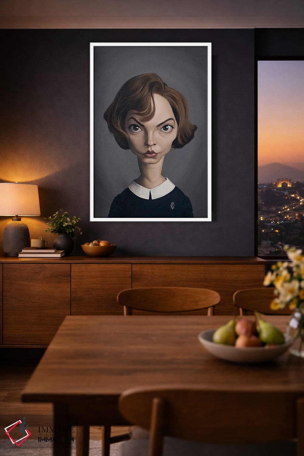 «آنیا تیلور جوی» اثرِ «راب اسنو» ترکیب خوبی برای کنار قابهای ساده و خطوط تمیزِ دکوراسیون است.