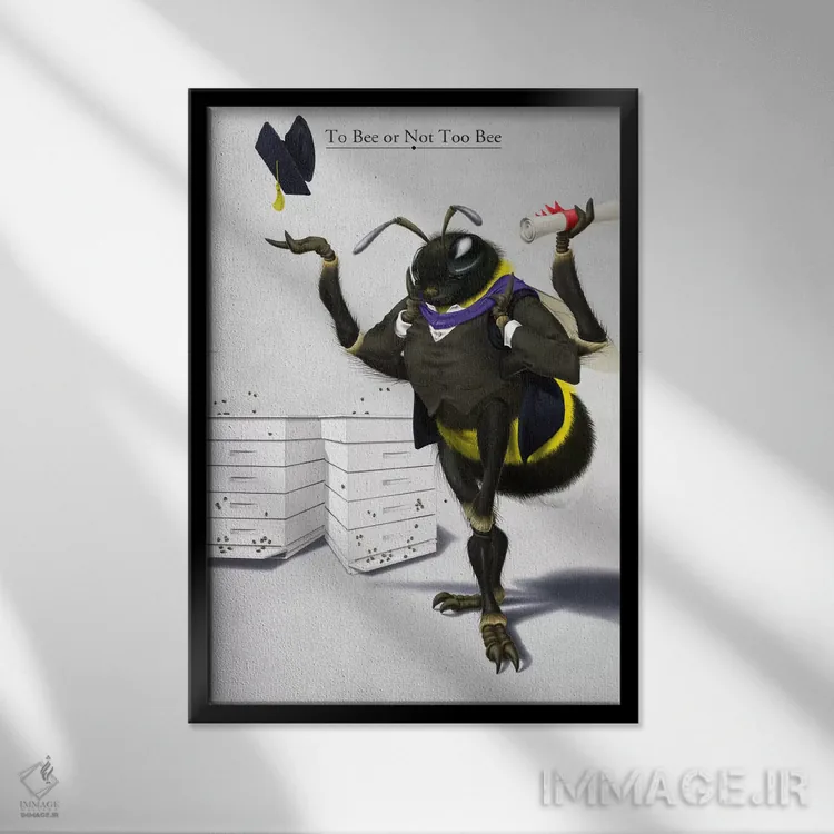 تابلو دکوراتیو زنبور بودن یا نبودن اثر راب اسنو - نمای قاب‌دار مشکی