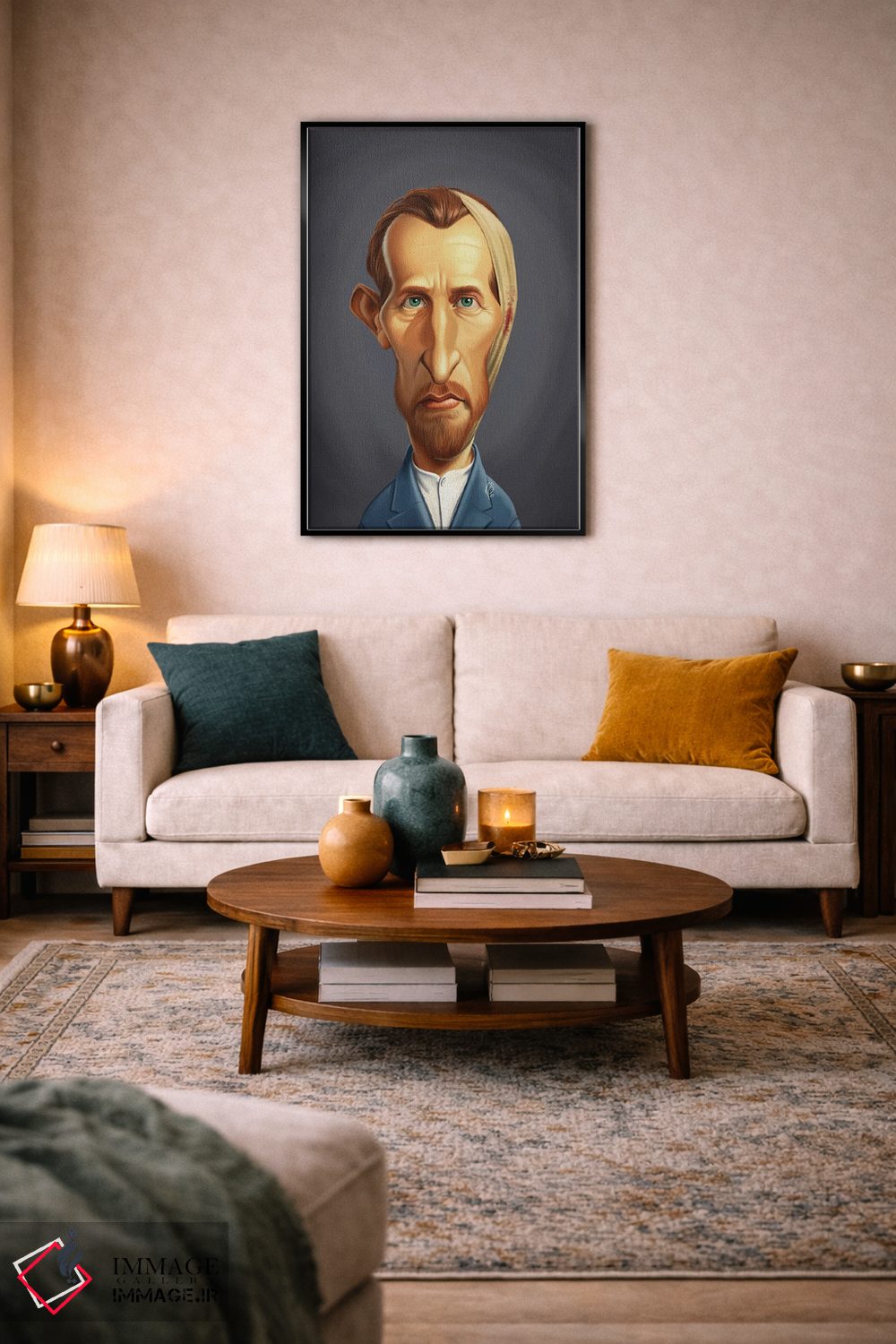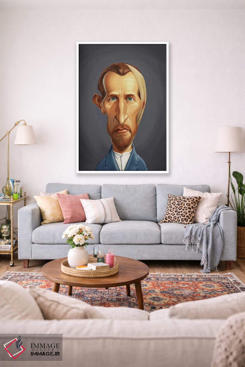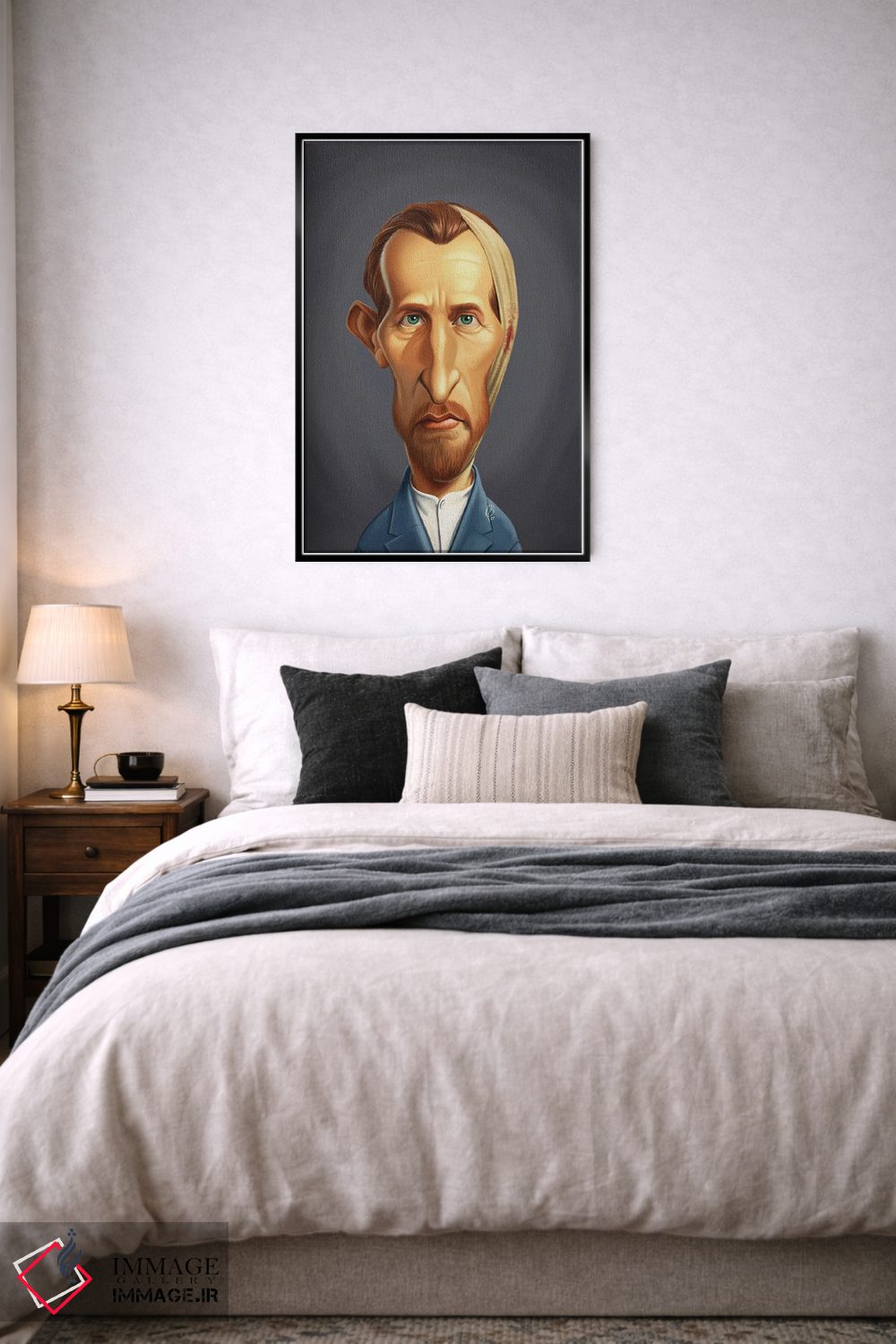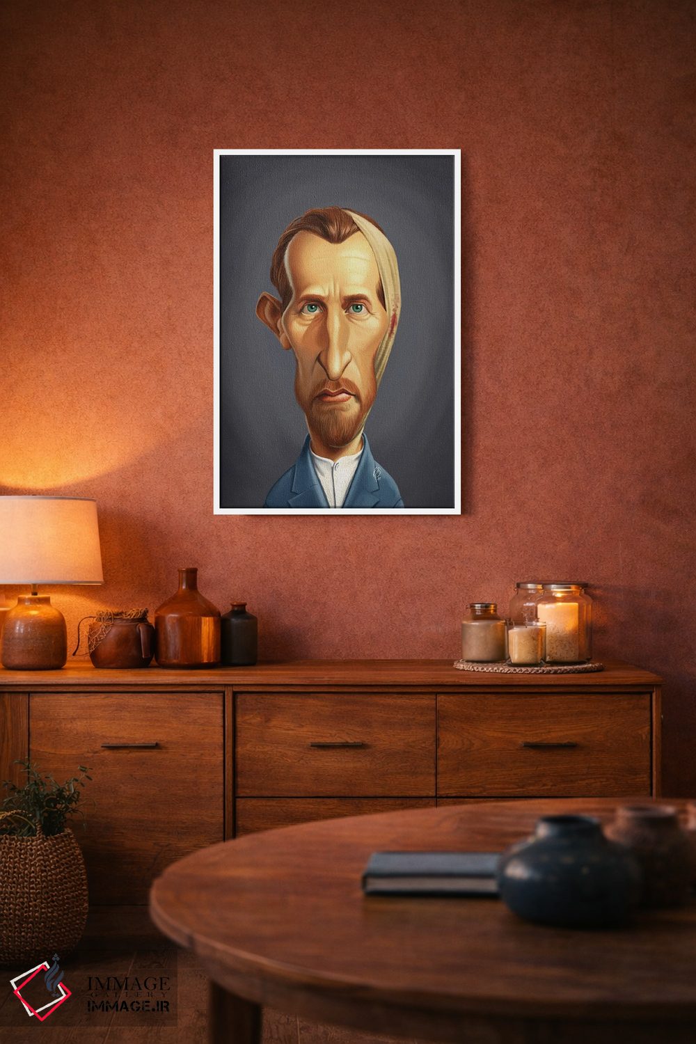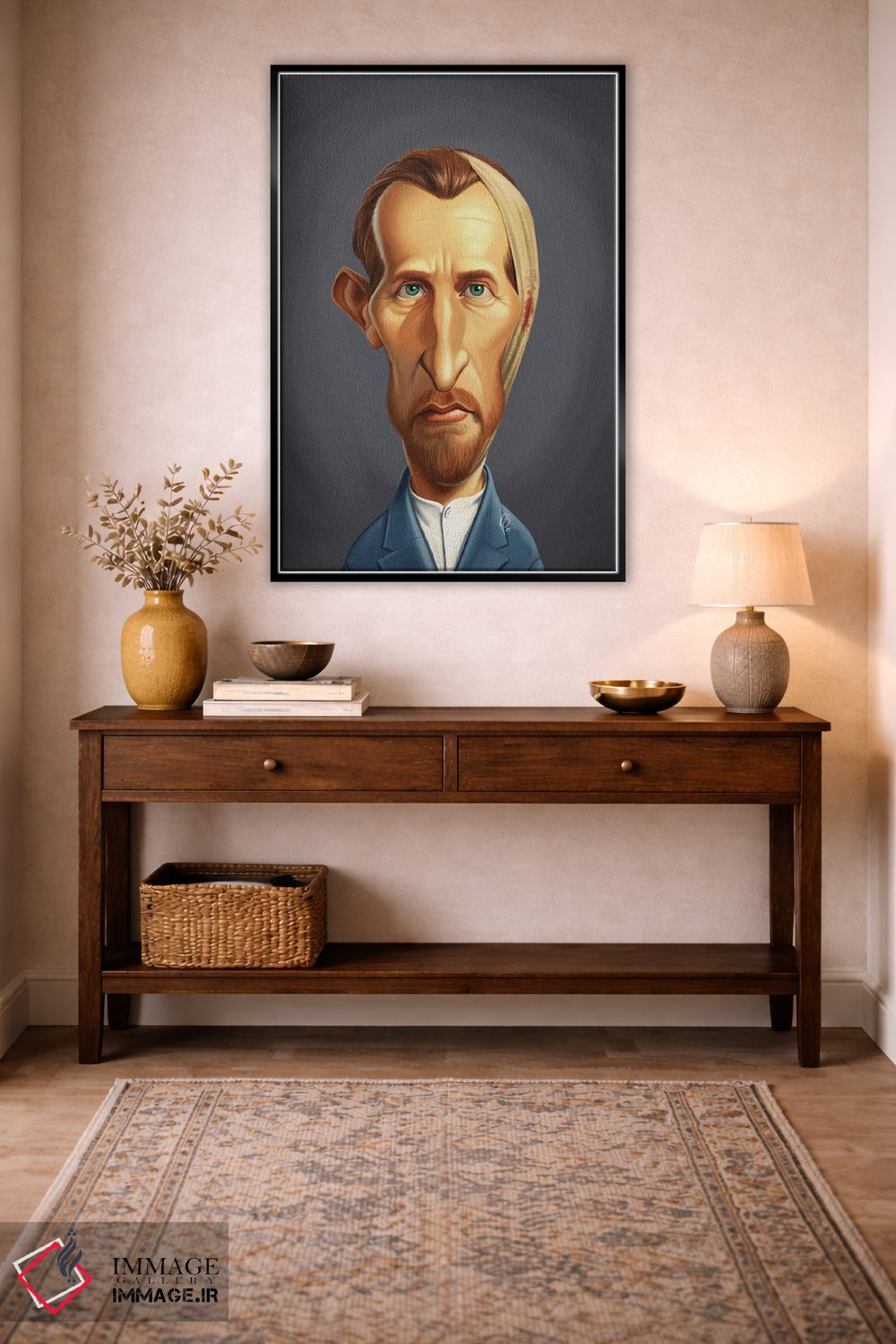 این تابلو با عنوان «ونسان ون گوگ بیگوش» اثرِ «راب اسنو»، کنار آینه و رختکن یا اتاق لباس عالی مینشیند.