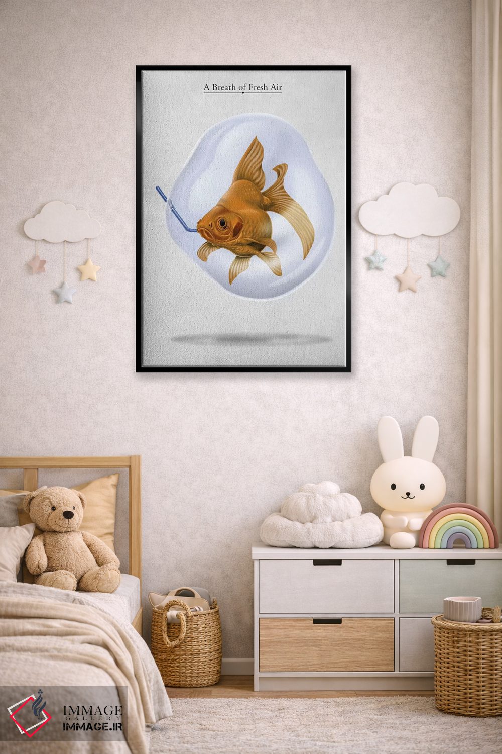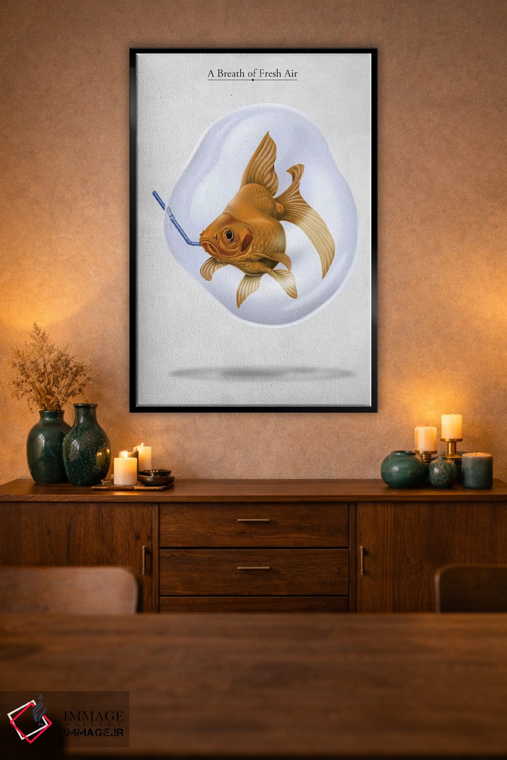 برای دکورهای صمیمی، «نفس هوای تازه» اثرِ «راب اسنو» فضا را صمیمیتر و دعوتکنندهتر نشان میدهد؛ برای کافههای کوچک و صمیمی انتخابی خوشسلیقه است. هر بار نگاهش میکنید، یک جزئیات تازه به چشم میآید.