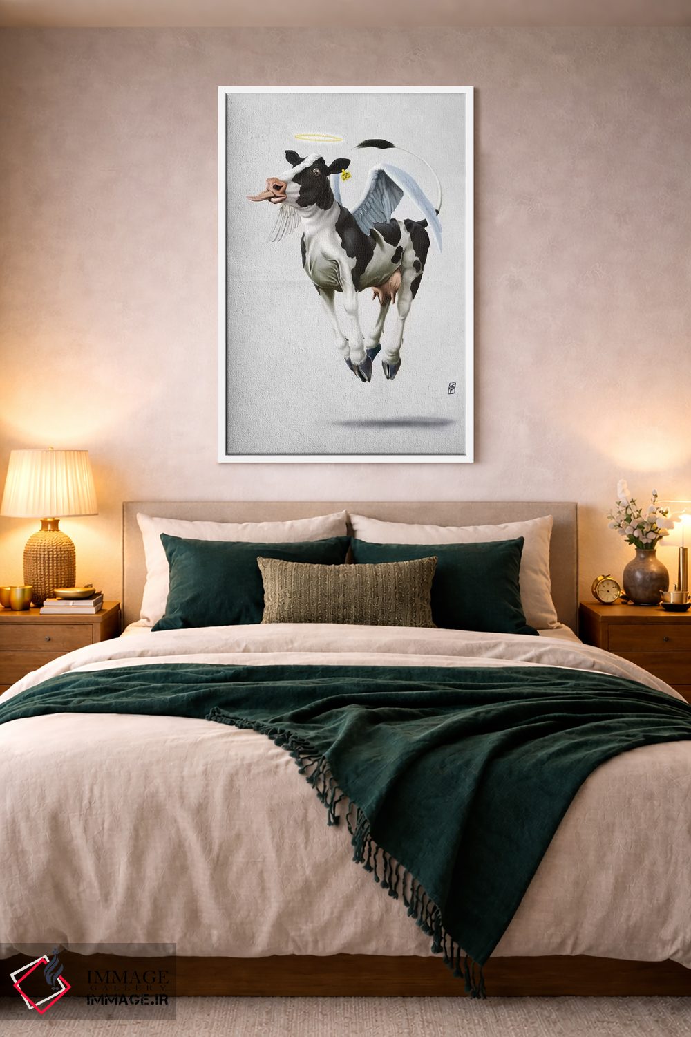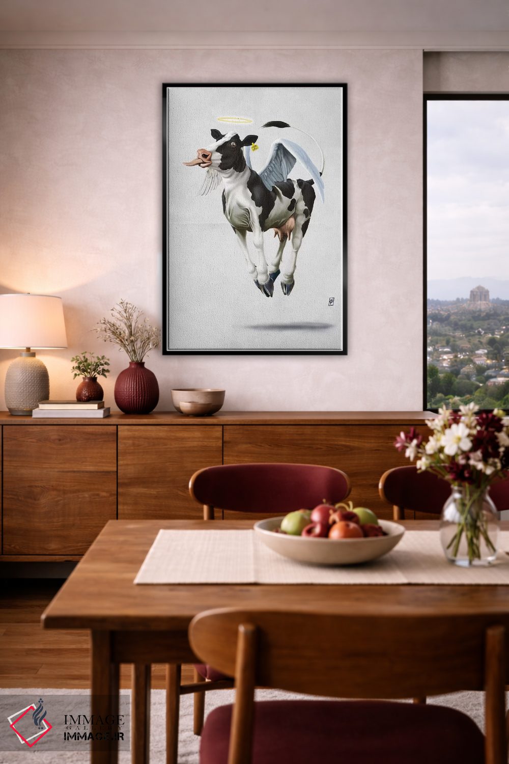 اگر به آثار حیوانات علاقه دارید، «گاو مقدس ۲» اثرِ «راب اسنو» یک لبخند ریز به چیدمان میدهد، برای دیوار کنار میز کار گزینهٔ مناسبیست. در کنار گیاهان و نور طبیعی، جذابتر هم میشود.
