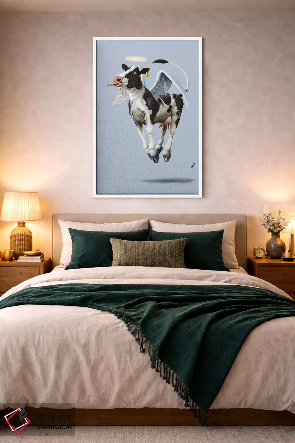 تابلو دکوراتیو گاو مقدس ۳ اثر راب اسنو - نمای قاب‌دار سفید