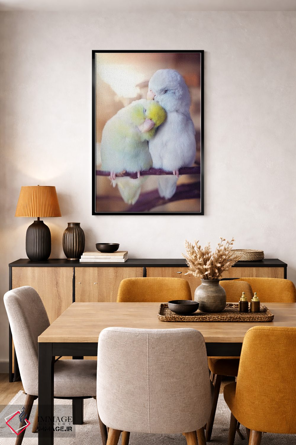طراحی بوم گالری ایماژ بهگونهای است که اثر روی دیوار «پرداختشده» و حرفهای دیده شود—نه پرزرقوبرقِ بیپایه؛ بلکه دقیق و خوشپرداخت. بافت ظریف کنواس کمک میکند حس اثر هنری را در نگاه نزدیک نگه میدارد بهخصوص وقتی نور موضعی ملایم داشته باشید. در بافت ظریف کنواس، به تصویر شخصیت میدهد بدون اینکه شلوغ کند و همین «پرداخت» تفاوت را میسازد. حاصل کار، یک تابلو خوشنشین است که هم از دور اثرگذار است و هم از نزدیک خوشخوان؛ در محیطهای کاری، این نظم بصری خیلی به چشم میآید.