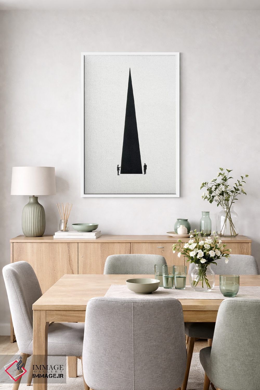 براساس پالت خنثی اثر، قاب مشکی مات (فریم باریک) پیشنهاد اول است و سفید مات (فریم باریک) مکمل. برای سفارشهای پروژهای با ابعاد و قابهای اختصاصی با ایماژ در تماس باشید.