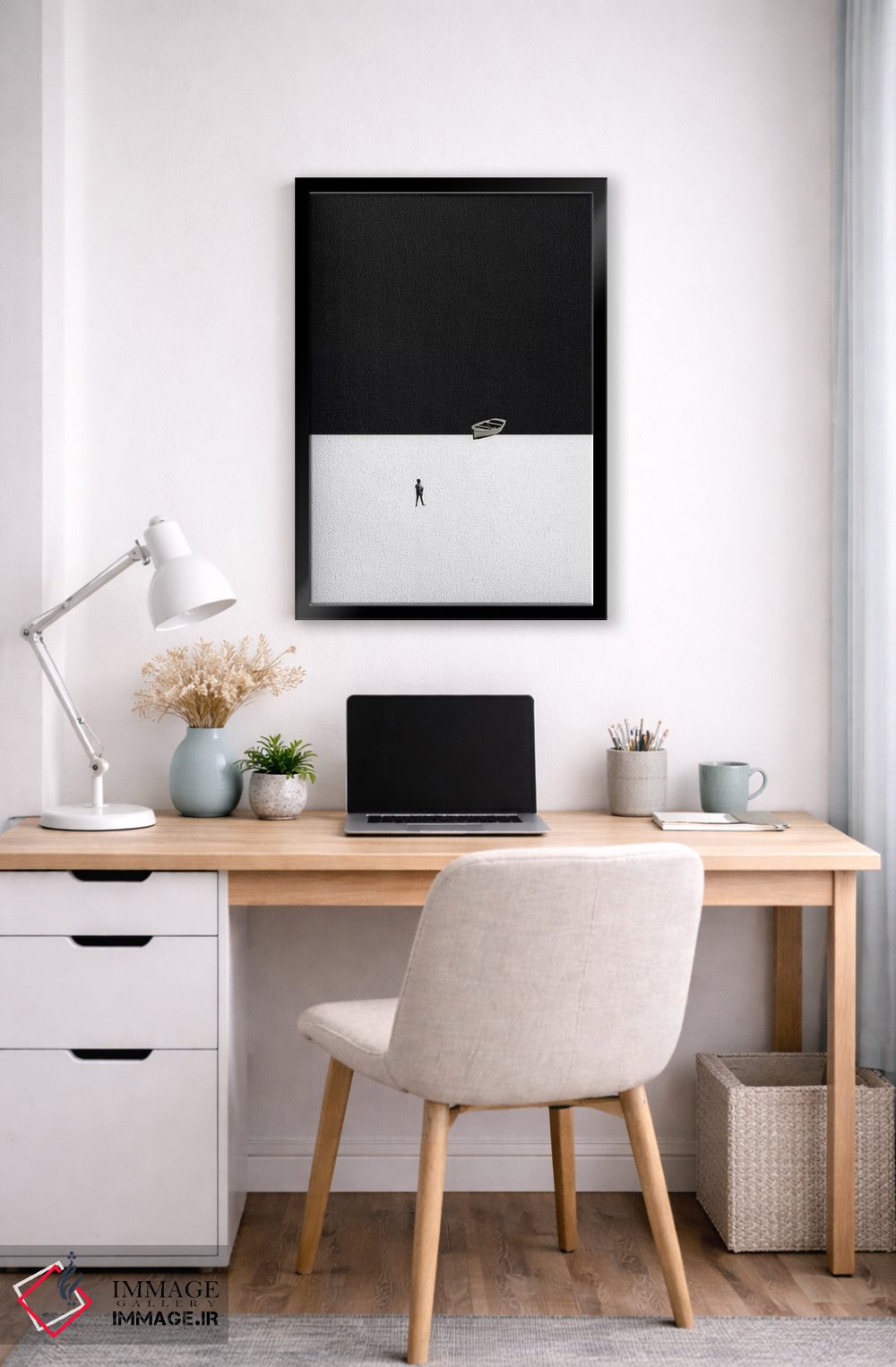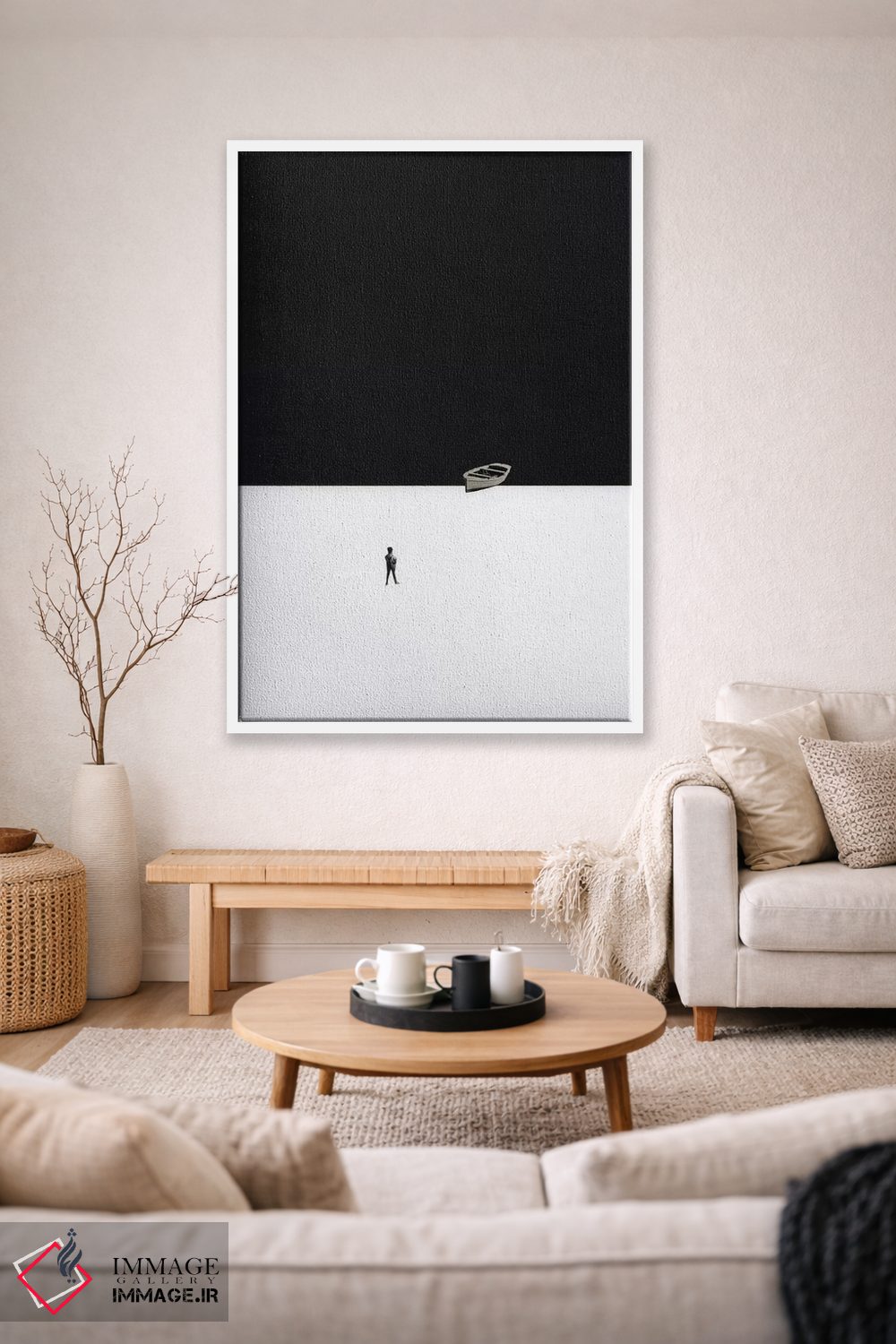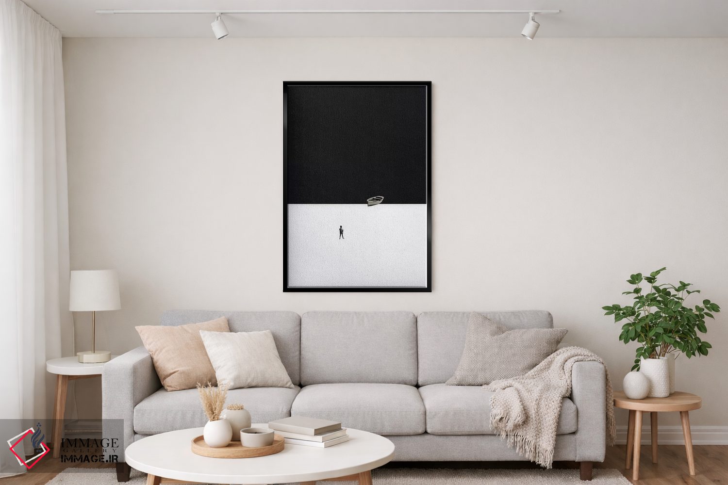 براساس پالت خنثی اثر، قاب مشکی مات (فریم باریک) پیشنهاد اول است و سفید مات (فریم باریک) مکمل. برای سفارشهای پروژهای با ابعاد و قابهای اختصاصی با ایماژ در تماس باشید.