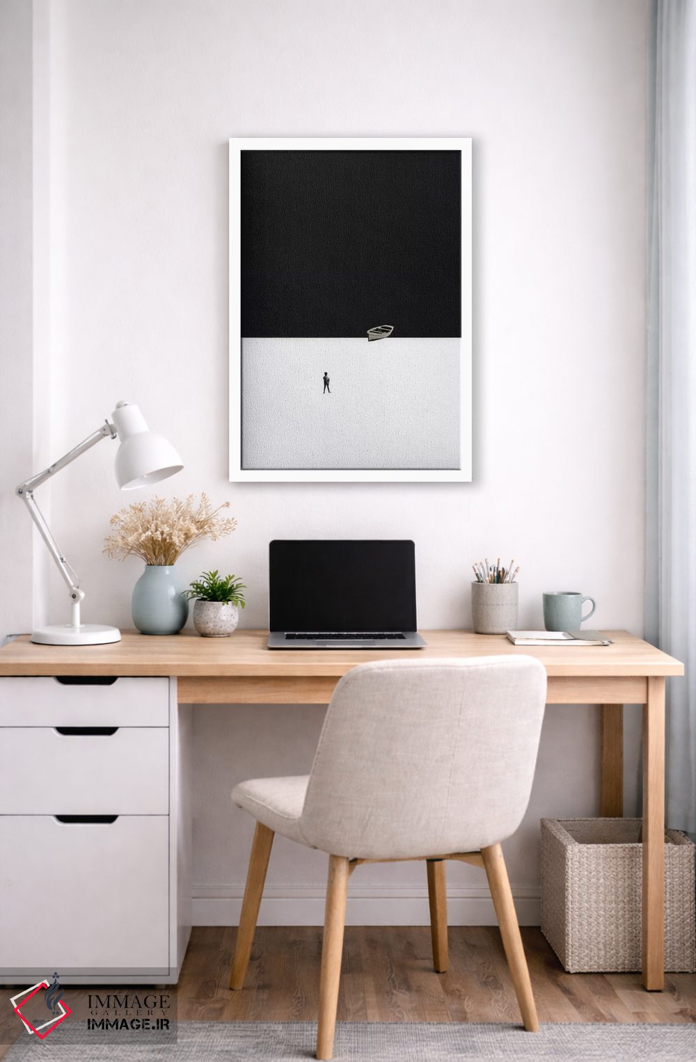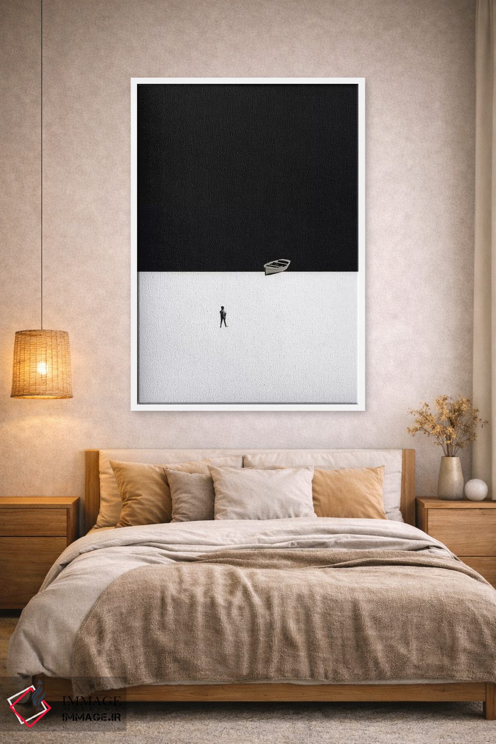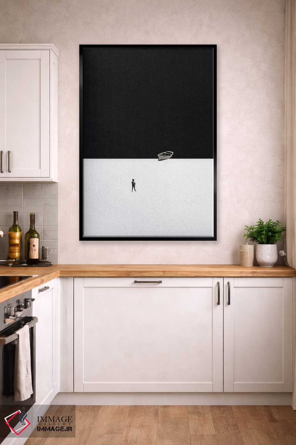براساس پالت خنثی اثر، قاب مشکی مات (فریم باریک) پیشنهاد اول است و سفید مات (فریم باریک) مکمل. برای سفارشهای پروژهای با ابعاد و قابهای اختصاصی با ایماژ در تماس باشید.