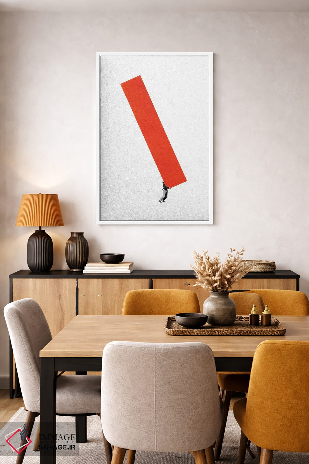 براساس پالت گرم اثر، قاب تیک گرم (چوبی) پیشنهاد اول است و مشکی مات (فریم متوسط) مکمل. برای سفارشهای پروژهای با ابعاد و قابهای اختصاصی با ایماژ در تماس باشید.