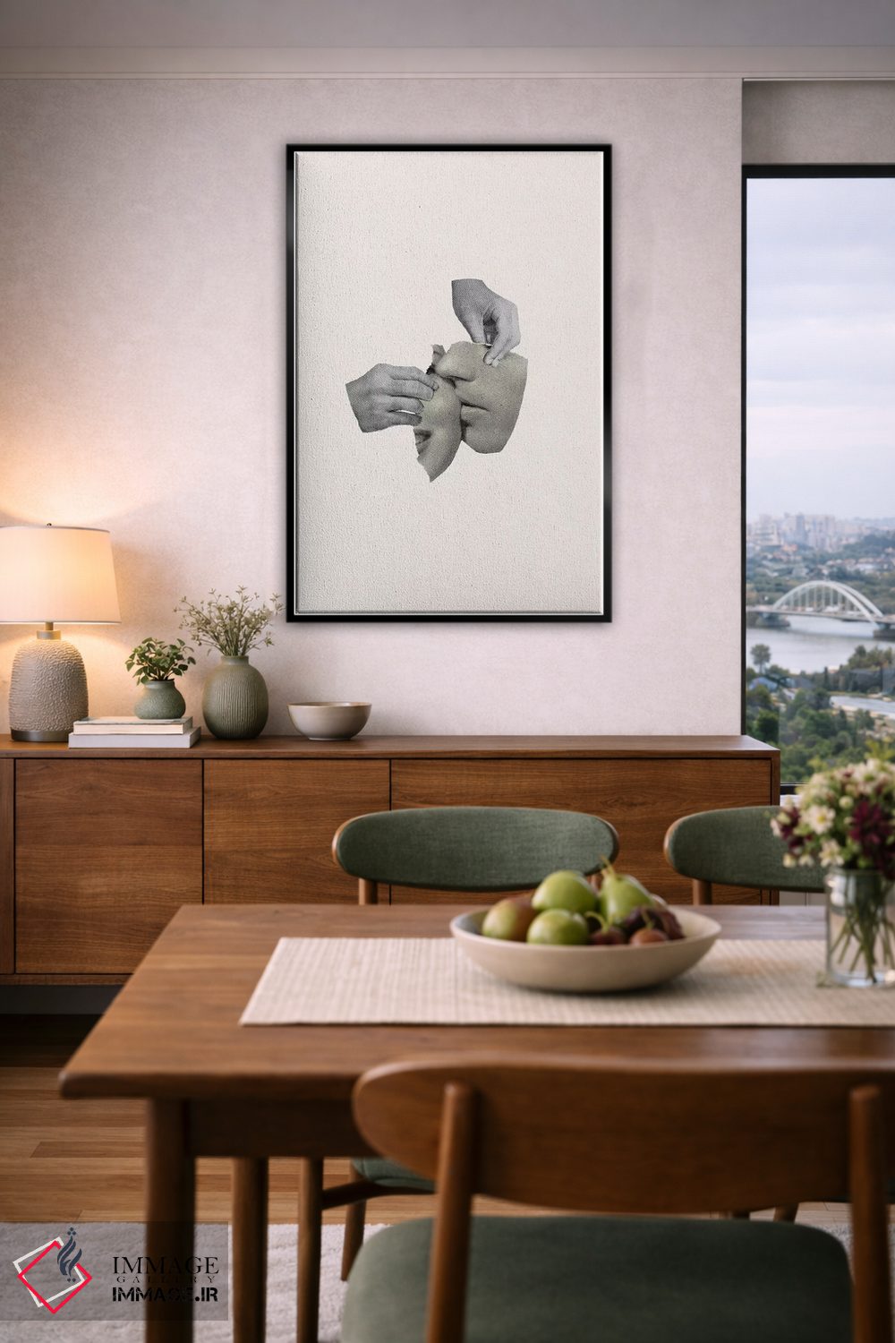 براساس پالت خنثی اثر، قاب مشکی مات (فریم باریک) پیشنهاد اول است و سفید مات (فریم باریک) مکمل. برای سفارشهای پروژهای با ابعاد و قابهای اختصاصی با ایماژ در تماس باشید.