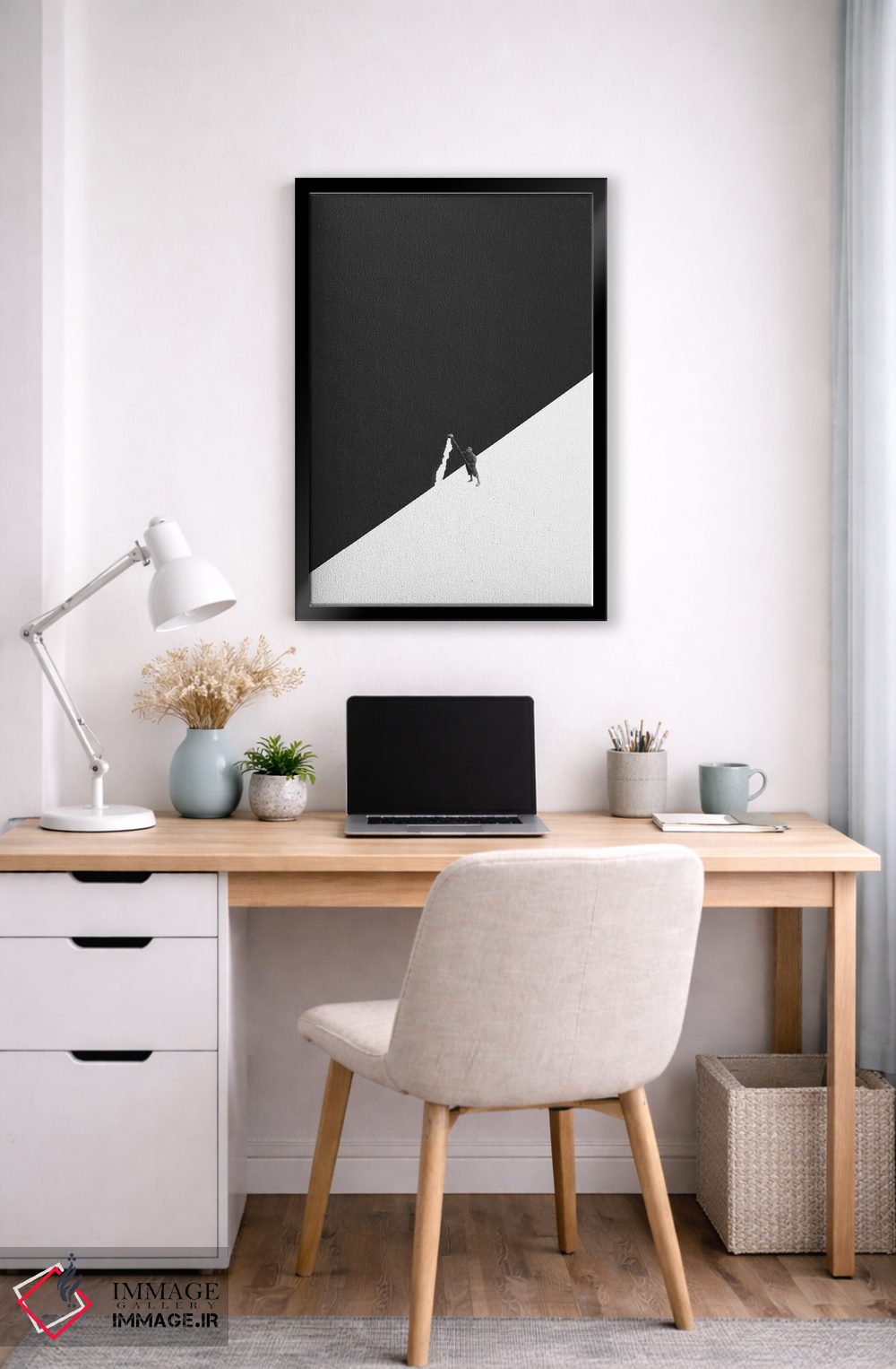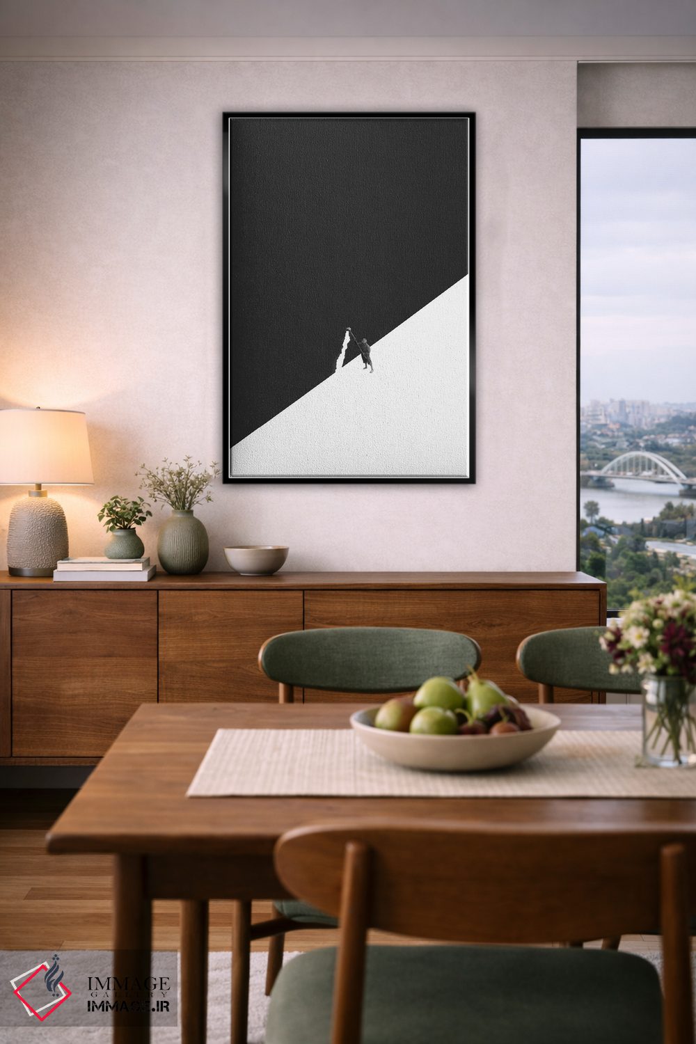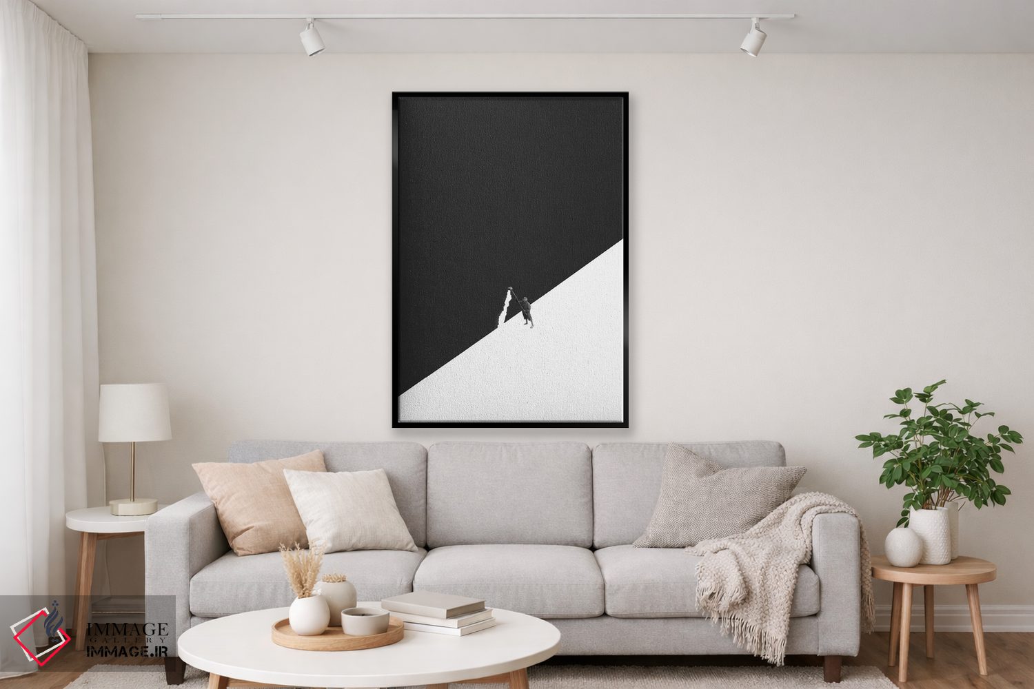 براساس پالت خنثی اثر، قاب مشکی مات (فریم باریک) پیشنهاد اول است و سفید مات (فریم باریک) مکمل. برای سفارشهای پروژهای با ابعاد و قابهای اختصاصی با ایماژ در تماس باشید.
