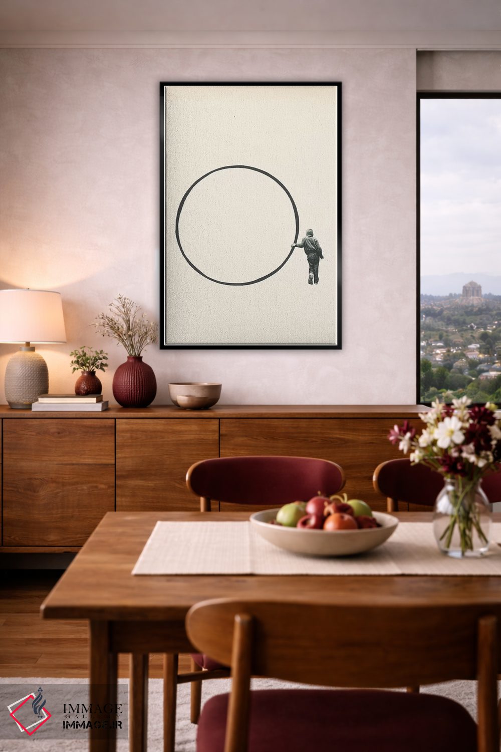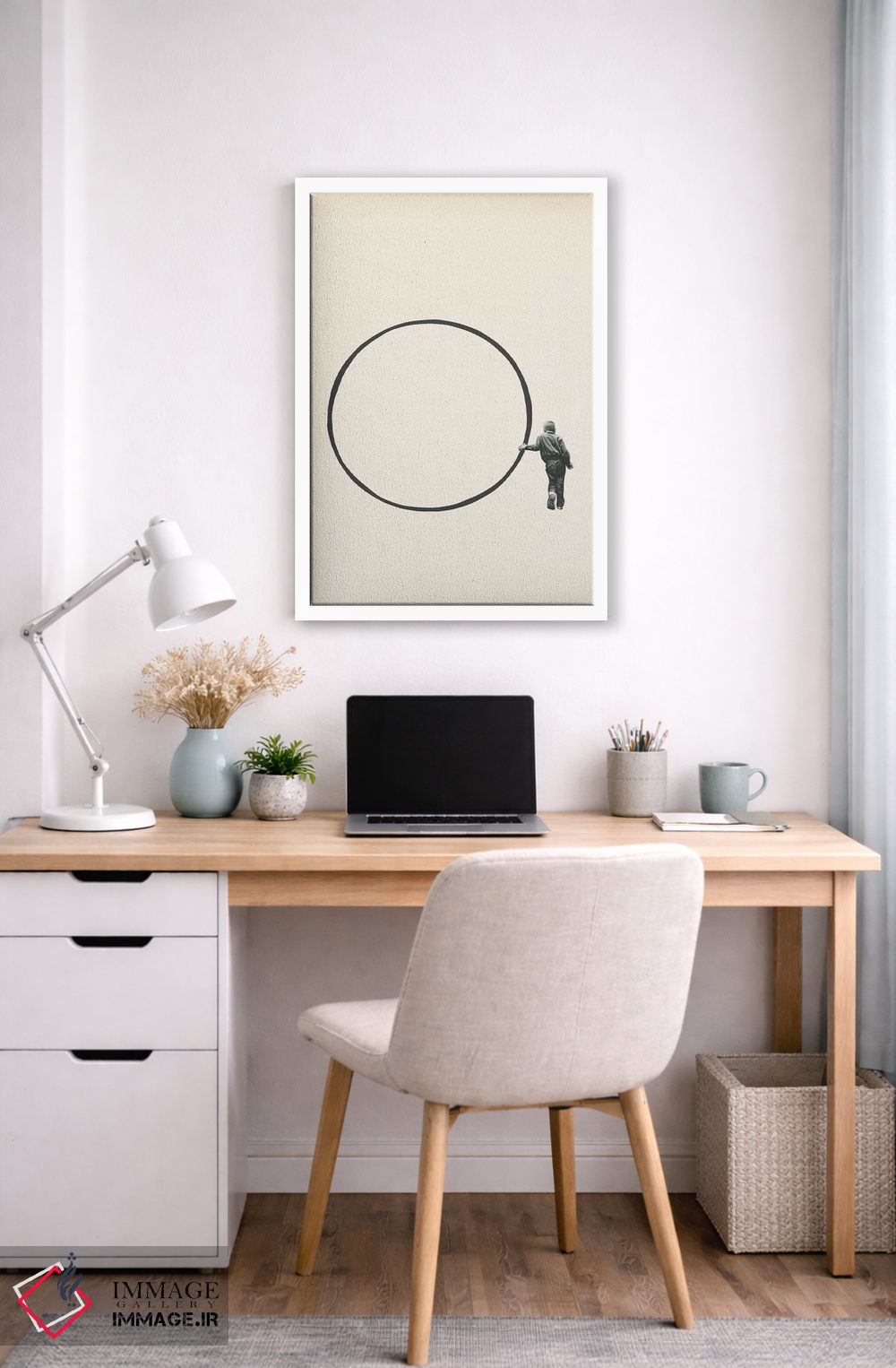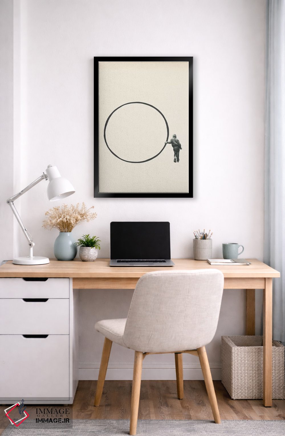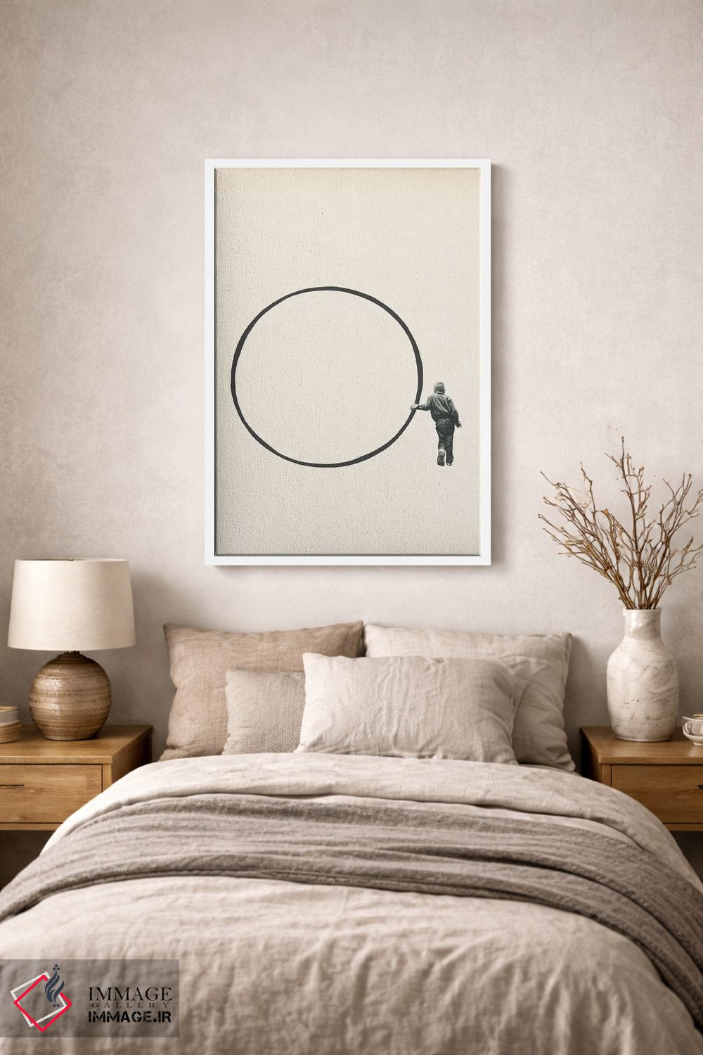 براساس پالت خنثی اثر، قاب مشکی مات (فریم باریک) پیشنهاد اول است و سفید مات (فریم باریک) مکمل. برای سفارشهای پروژهای با ابعاد و قابهای اختصاصی با ایماژ در تماس باشید.
